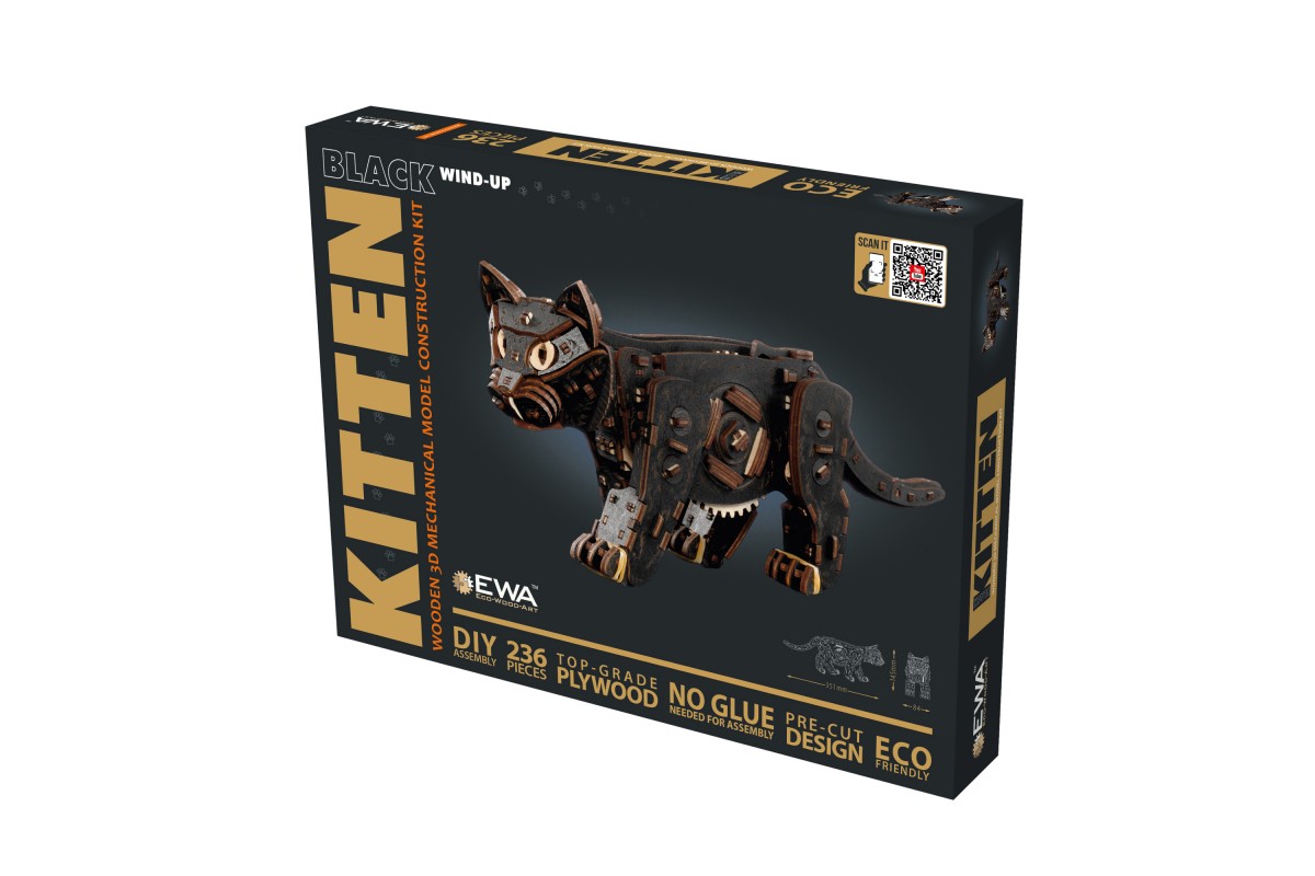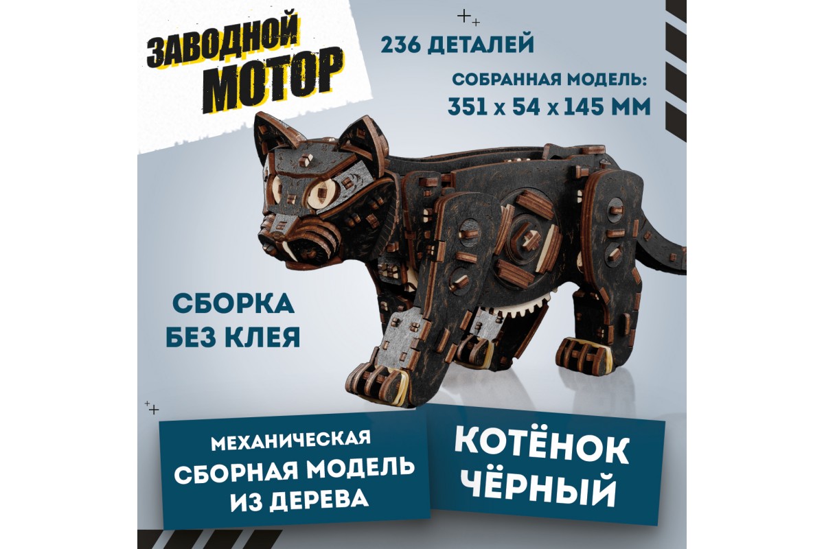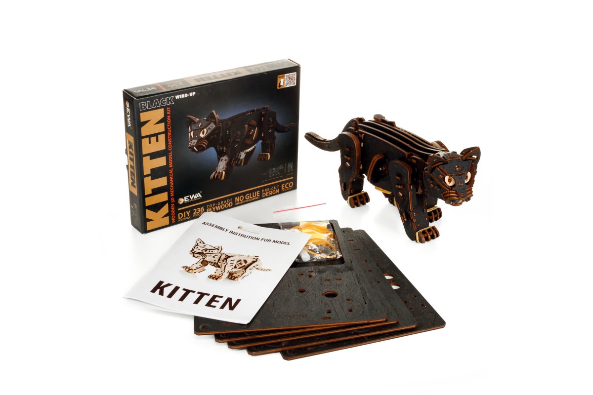 После сборки конструктора, заведите его, и он начнет шагать, словно настоящий живой котенок!