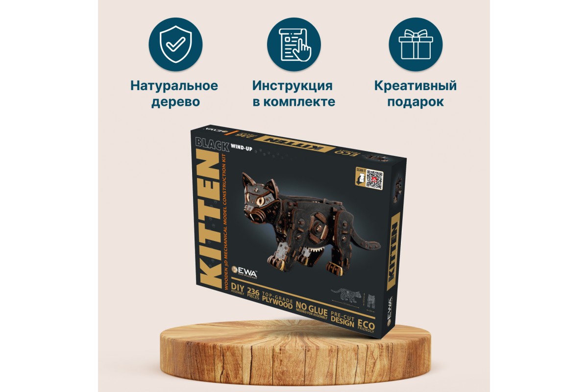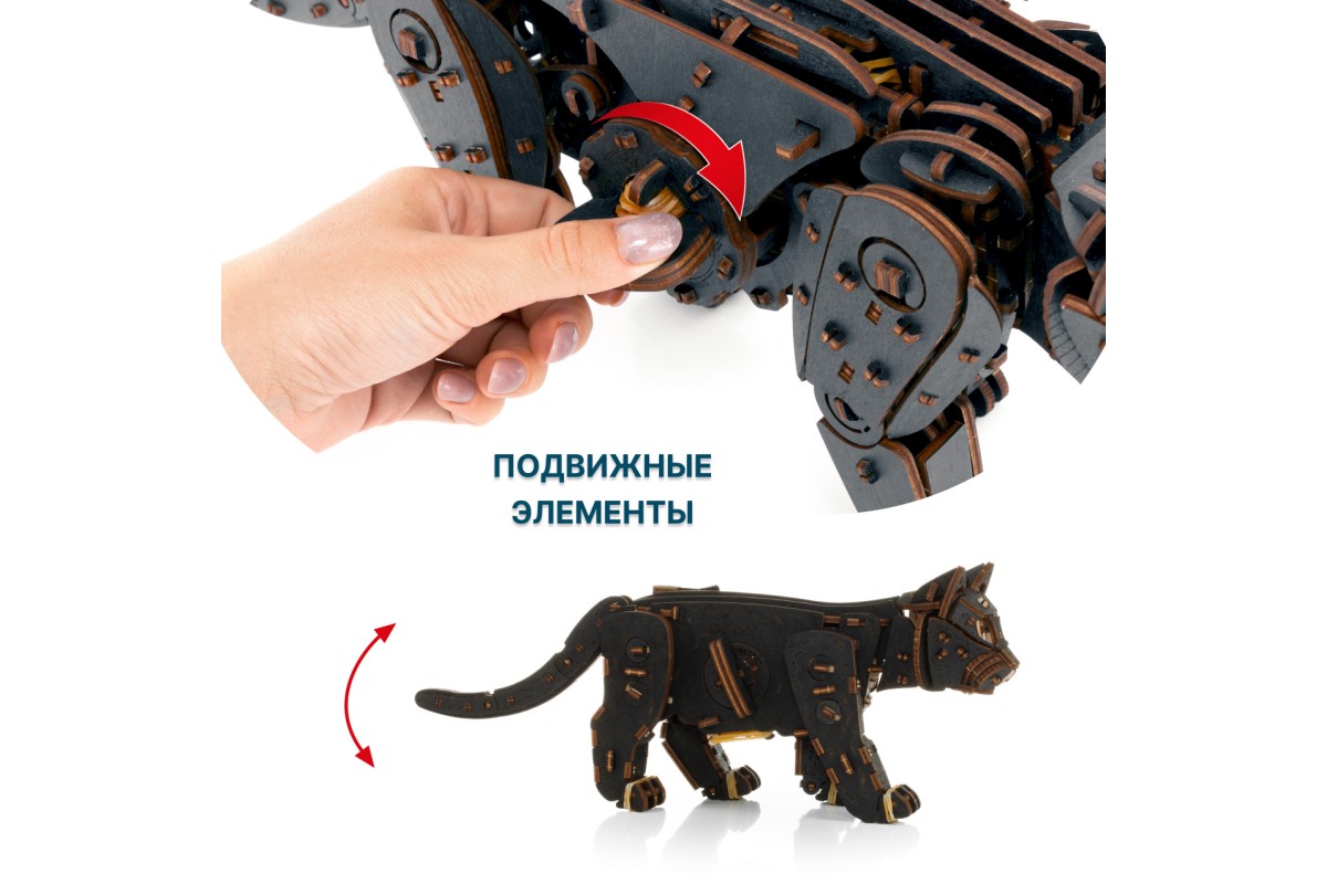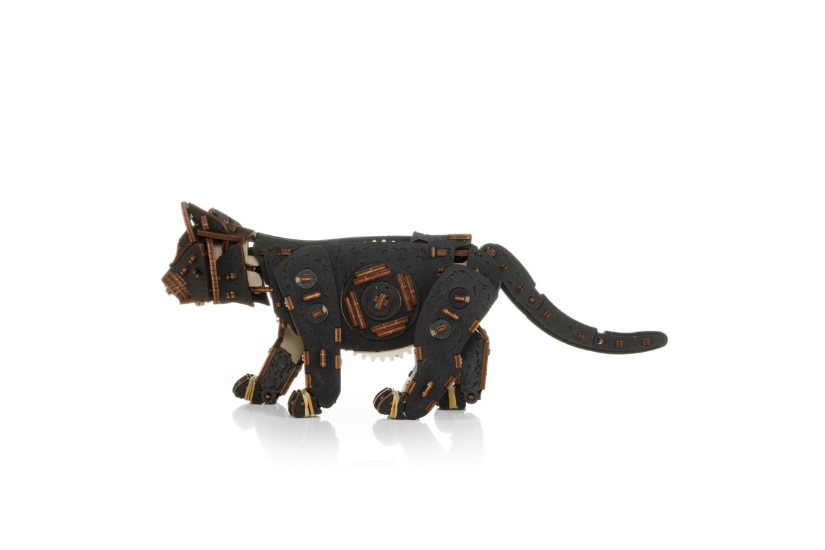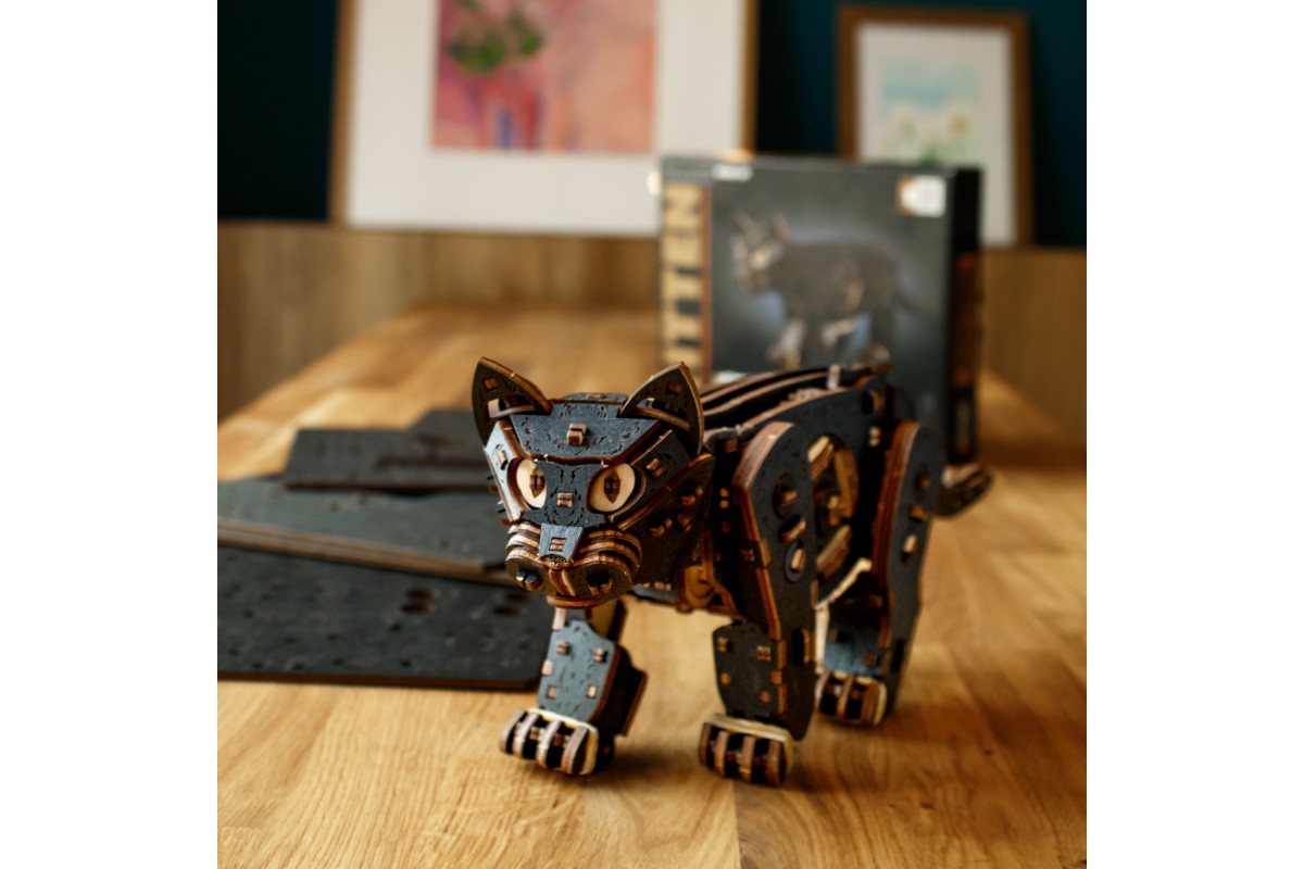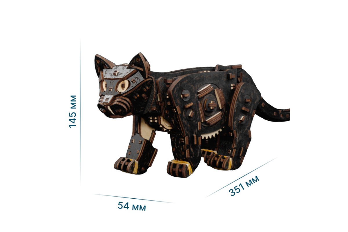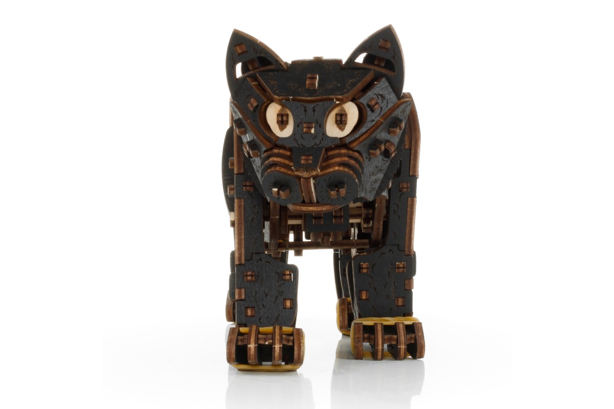 Деревянный механический конструктор в виде кота -альтернатива заведению домашнего питомца (никаких забот, а ребенок счастлив).