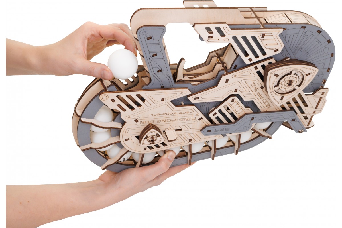 Создайте свою собственную деревянную пушку с помощью уникального 3D конструктора! Конструктор EWA Пинг Понг Пушка позволяет собрать модель, которая стреляет маленькими шариками, идеально подходящими для безопасных турниров. Благодаря конструкции без клея, сборка станет увлекательным процессом как для детей, так и для взрослых. Почему бы не собрать два набора и создать настоящую арену для битв? Это отличная возможность проявить навыки стратегии и бросить вызов друзьям в незабываемых пинг-понговых сражениях!