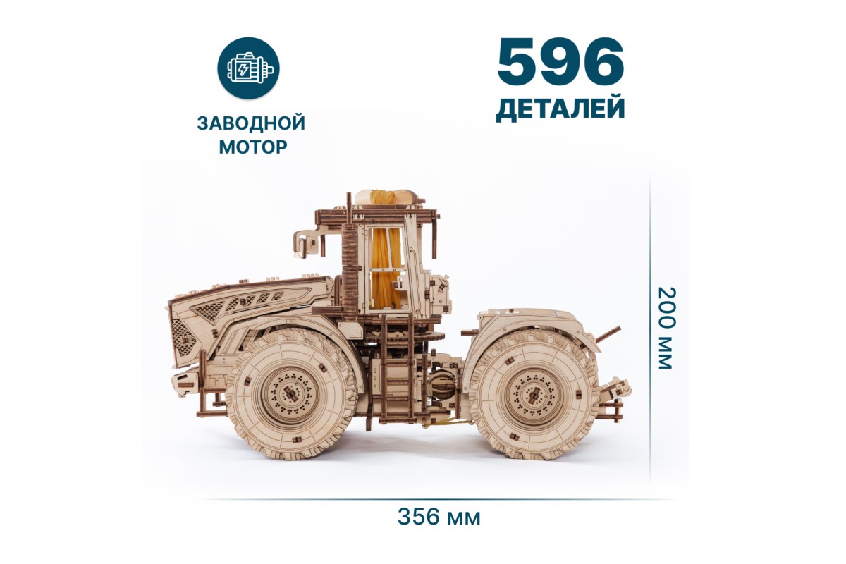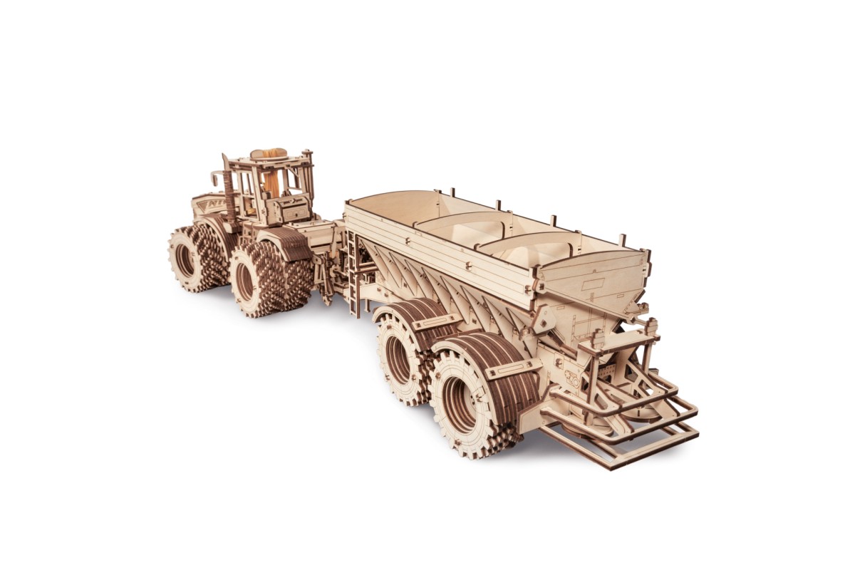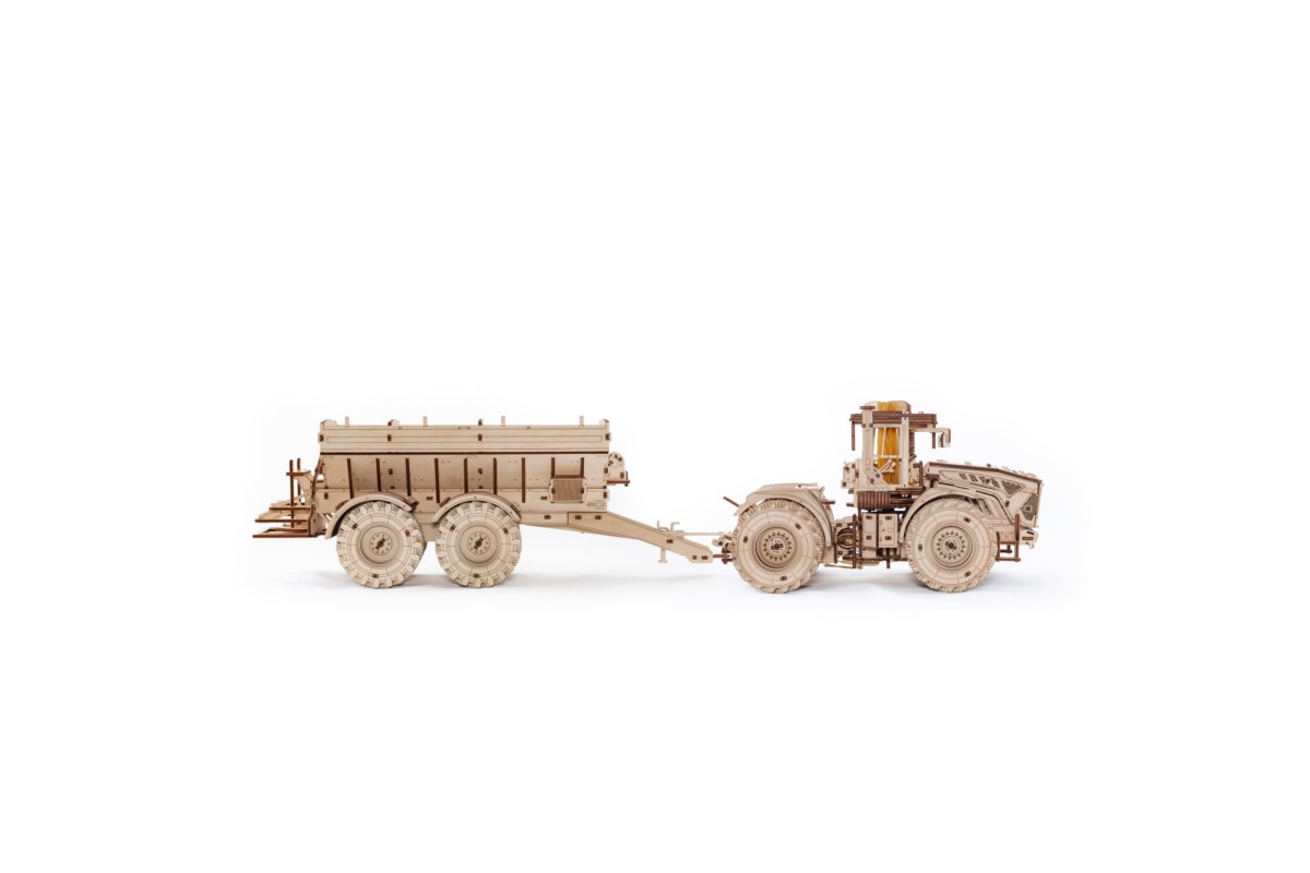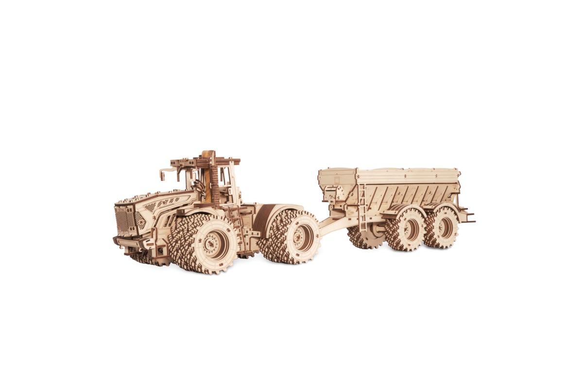 Набор конструкторов 2 в 1. Механическая сборная модель Трактор КИРОВЕЦ К-7М с мотором и Прицеп к трактору от бренда EWA Eco-Wood-Art - выгодный и отличный подарок как для ребенка, так и для взрослого человека, который увлекается конструированием и моделированием.
