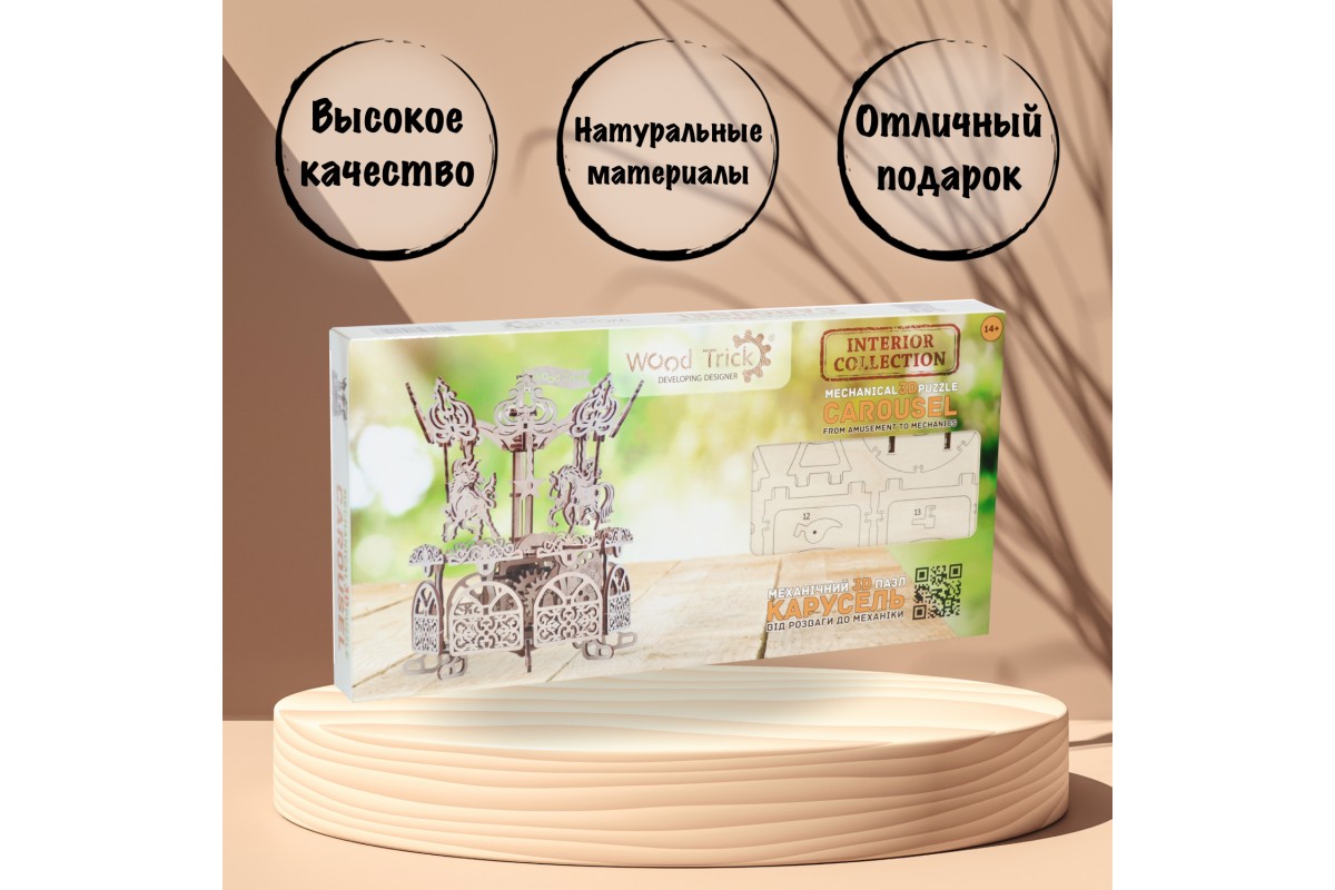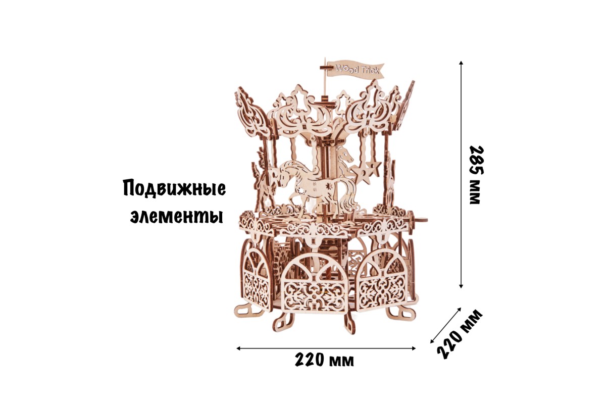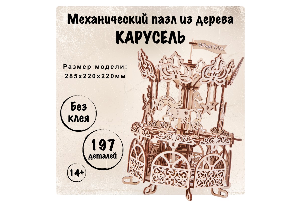 Ваши домочадцы с удовольствием помогут вам собрать карусель, чтобы хоть на секунду почувствовать себя детьми и погрузиться в приятные воспоминания об этом прекрасном времени! Ваш ребенок будет с удовольствием учиться создавать и проектировать собственные конструкции и автомобили, как это делают настоящие архитекторы и инженеры. Мы надеемся, что наборы Wood Trick не просто подарят повод многим семьям чаще собираться вместе, но и помогут в будущем раскрыть потенциал множества творческих личностей!