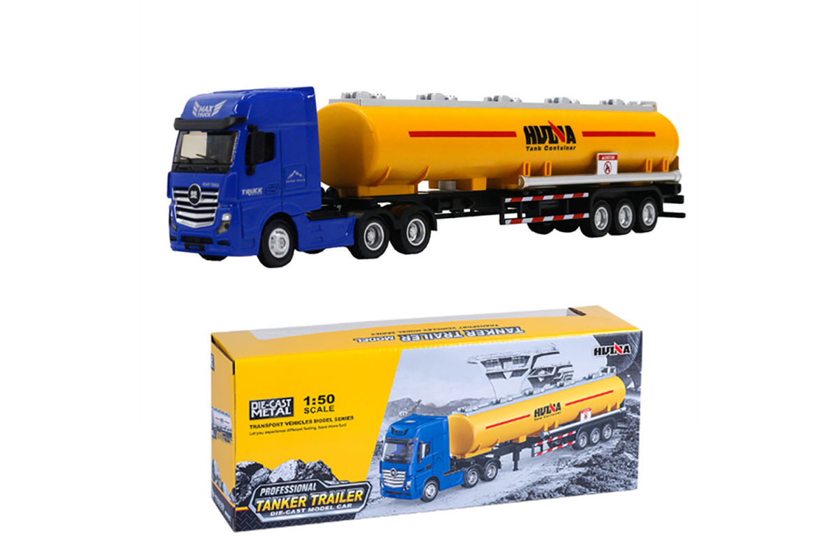 - Металлический грузовик бензовоз HUI NA TOYS масштаб 1:50 - HN1733-YELLOW