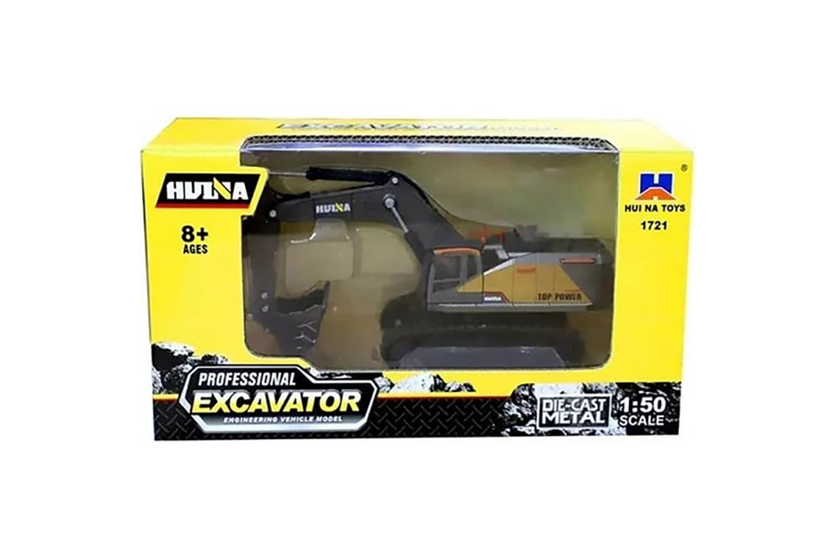 Металлический гусеничный экскаватор HUI NA TOYS масштаб 1:50 - HN1721-YELLOW: игрушечная спецтехника имеет реалистичный дизайн, благодаря которому представленная модель ничем не отличается от настоящего экскаватора.