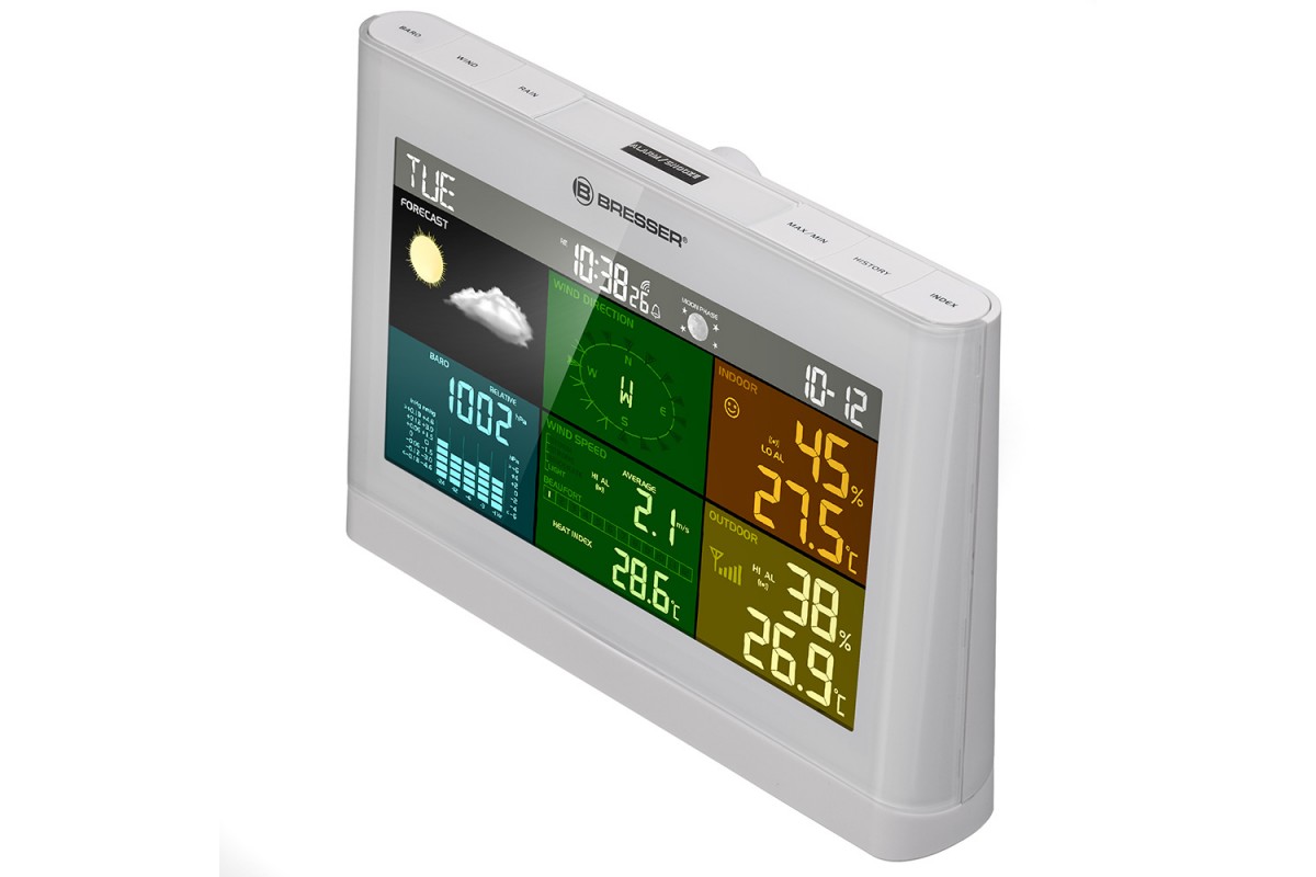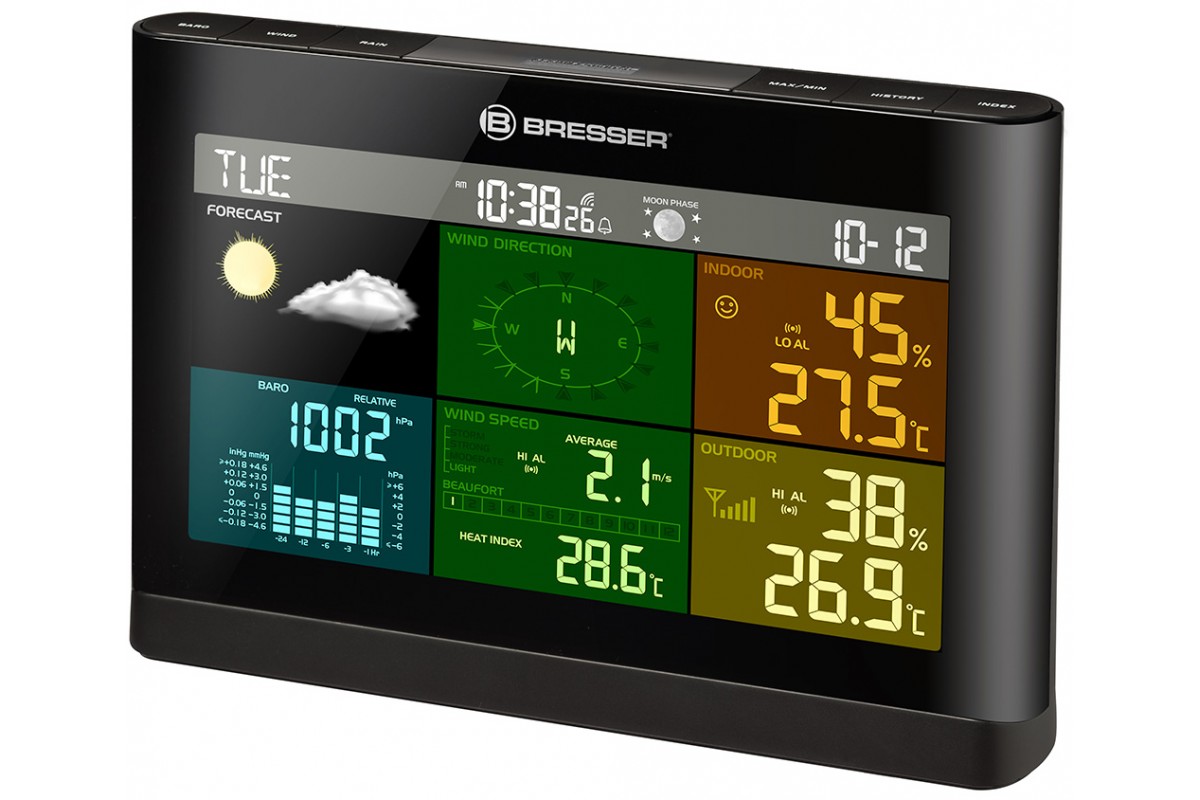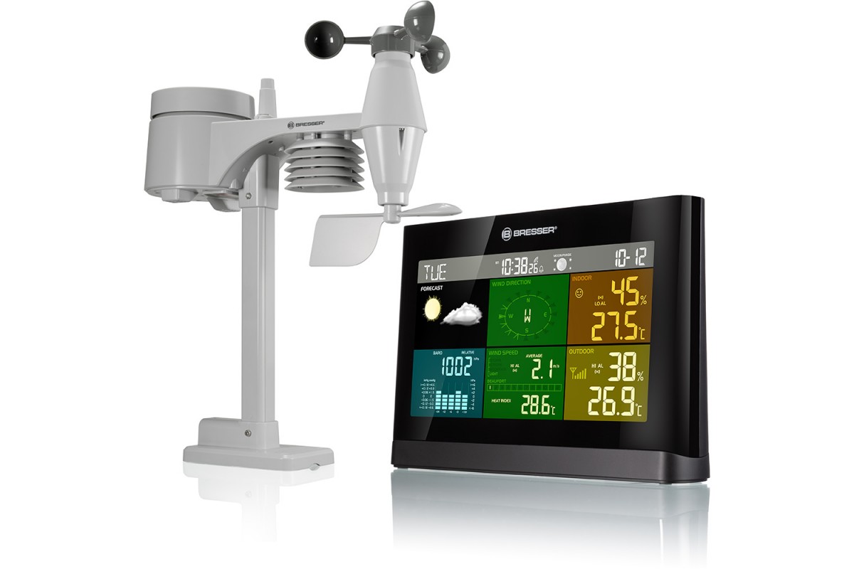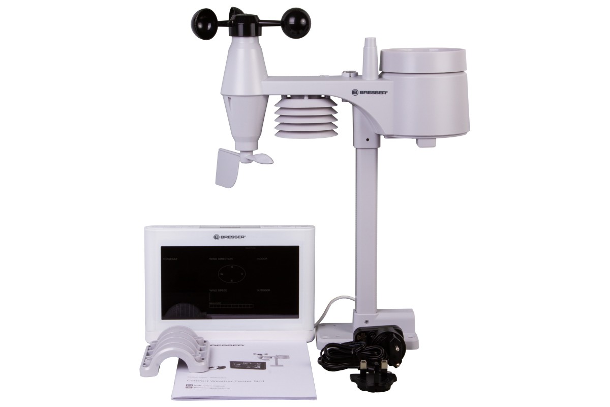 При выборе метеостанции важно определить для себя, насколько полную погодную сводку вы хотите получать. Если вы не приемлите компромиссы и хотите быть в курсе всех капризов природы, обратите внимание на Bresser Comfort «5 в 1». Это многофункциональный профессиональный метеоцентр, который определяет уровень выпавших осадков, скорость и направление ветра, точку росы и тепловой индекс. И это в дополнение ко всем классическим функциям домашней метеостанции, которые присутствуют во многих аналогичных приборах.
