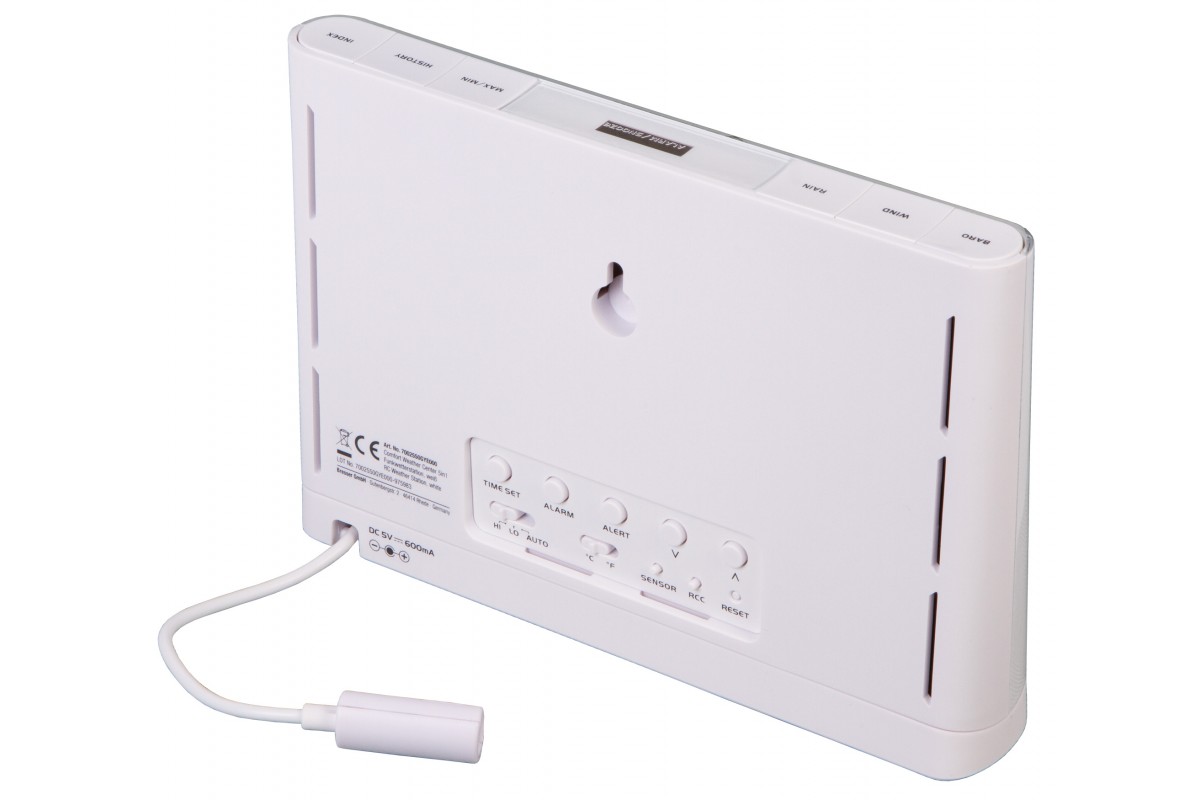 Удобно, что метеостанция не требует прокладки проводов, так как датчик передает данные по радиоканалу. А вот кабель питания у метеостанции есть – для ее работы требуется подключение к сети. Датчик работает от батареек.