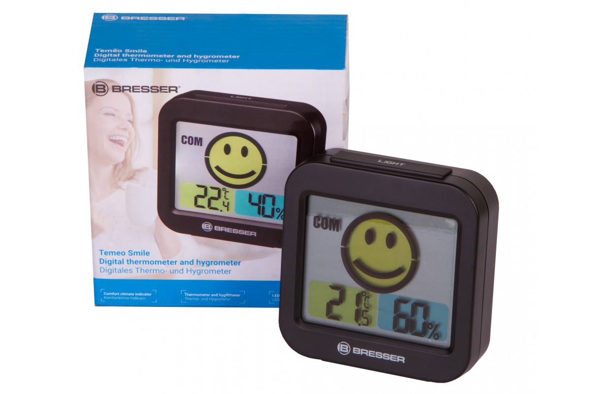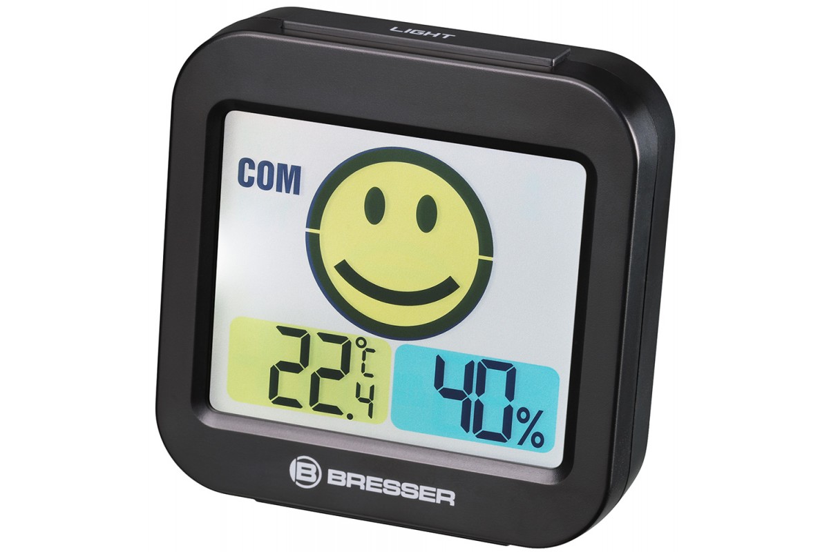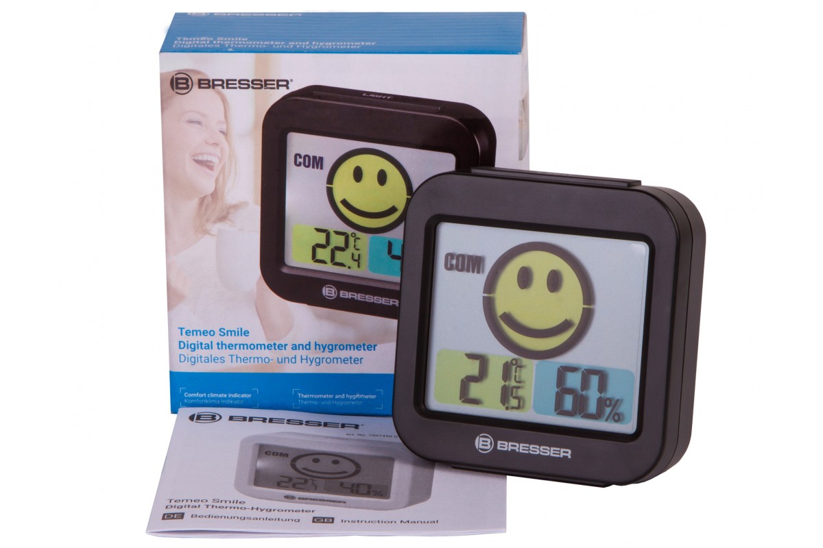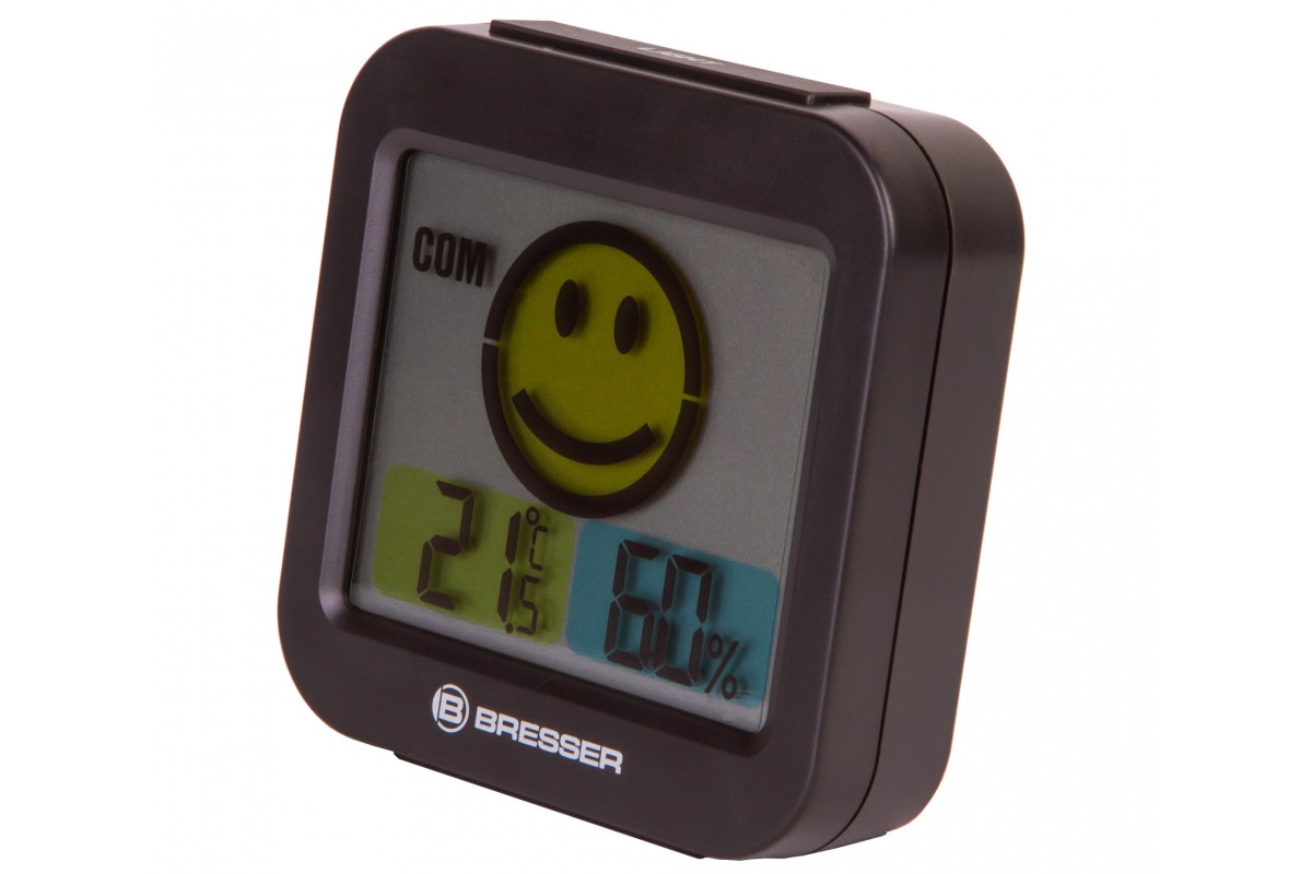 Компактная метеостанция Bresser MyTime Smile измеряет температуру и влажность воздуха и показывает, насколько комфортны условия в помещении. Смайлик на экране улыбается, если все хорошо, и становится несчастным, если воздух слишком влажный или, наоборот, сухой. Благодаря этому метеостанция помогает оберегать дом от возникновения плесени – она заранее предупреждает о неправильных метеоусловиях в комнате.