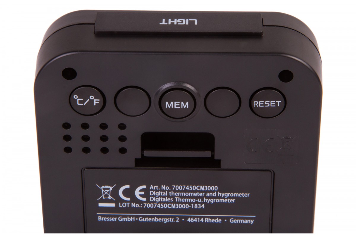 - Технические характеристики|Подсветка: белая|Место использования: внутри помещения|Гигрометр (влажность воздуха): 1|Оценка уровня общего комфорта: 1|По назначению: домашняя|Единицы измерения: °F