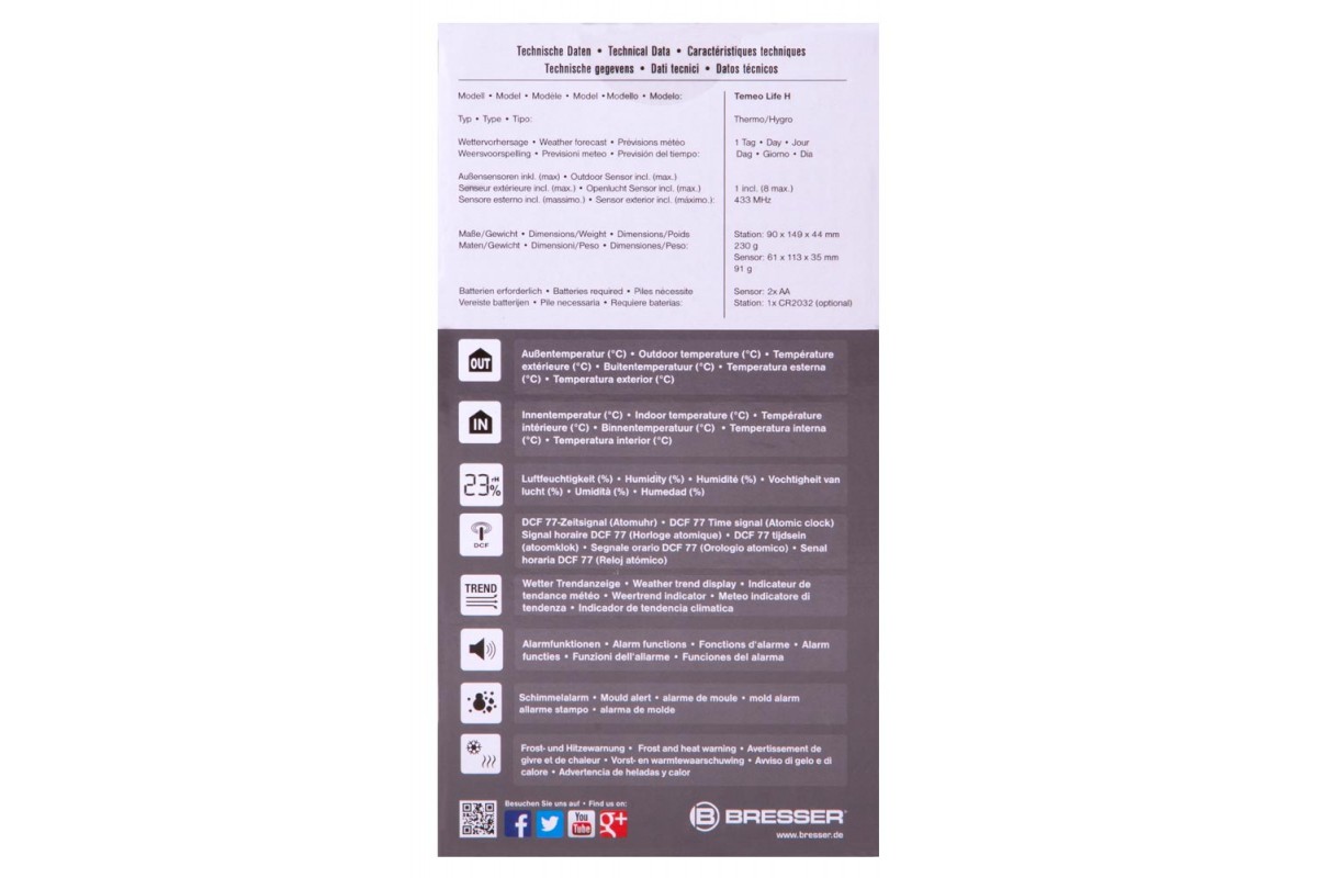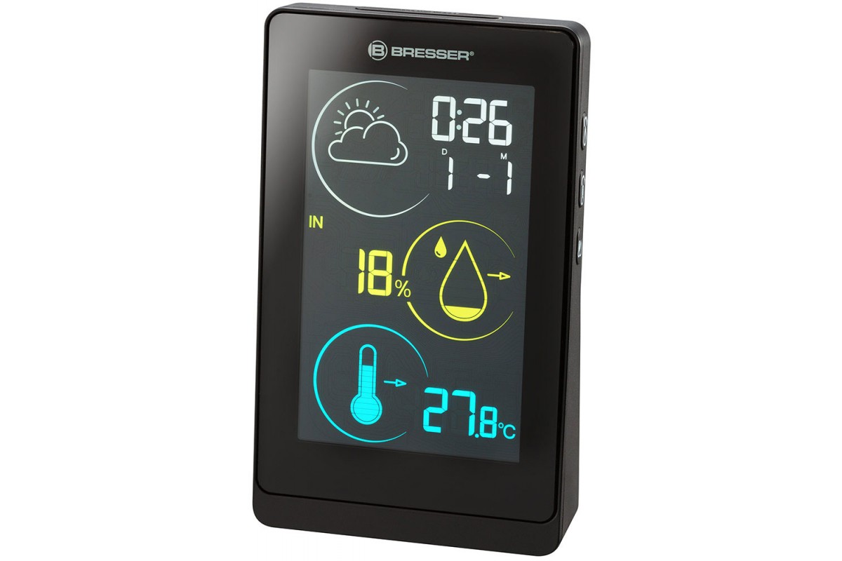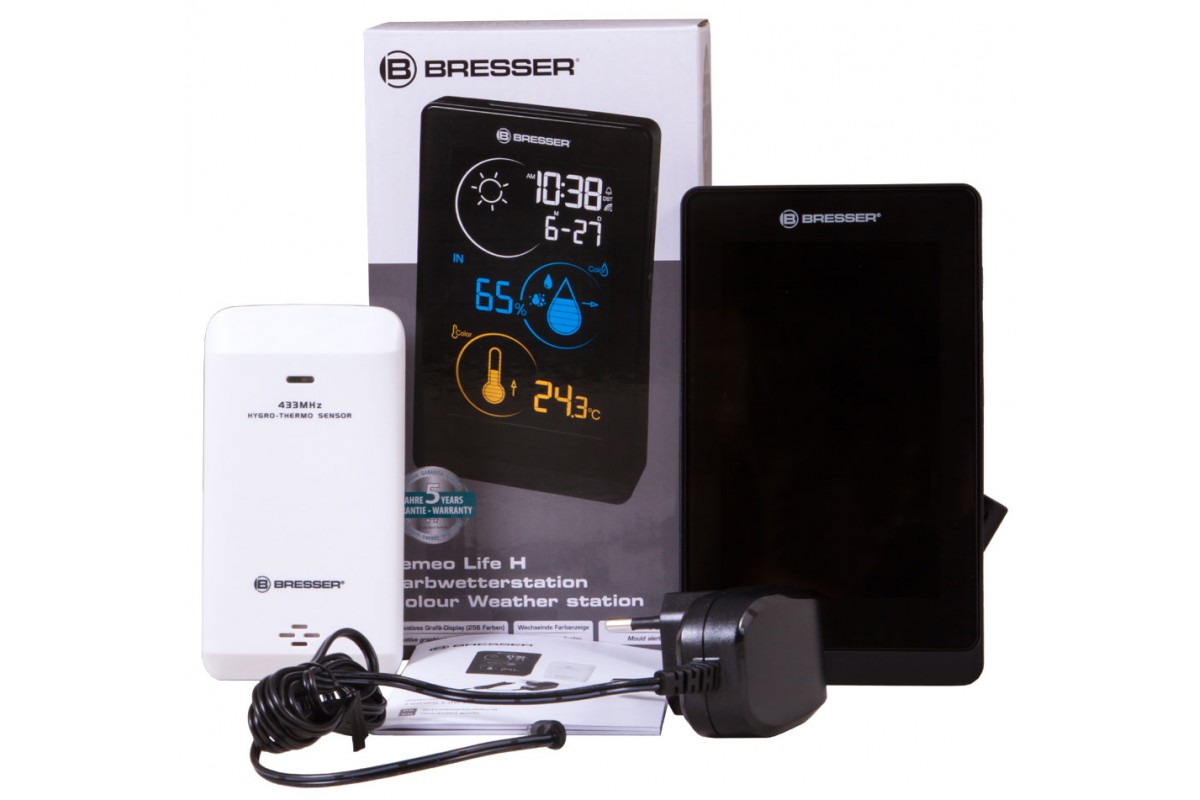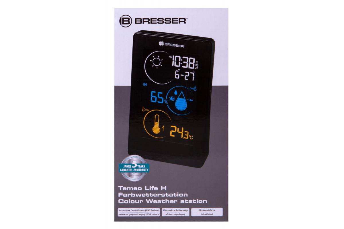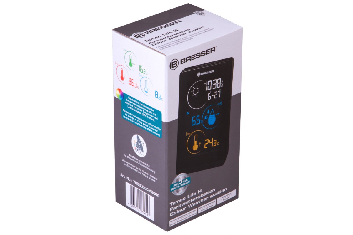 Bresser Temeo Life H – домашняя цифровая метеостанция в стильном корпусе. Все измерения выводятся на встроенный экран, который отображает до 256 цветов и может реагировать сменой оттенка на изменения температуры и влажности воздуха. Bresser Temeo Life H – современный гаджет для дома или дачи.