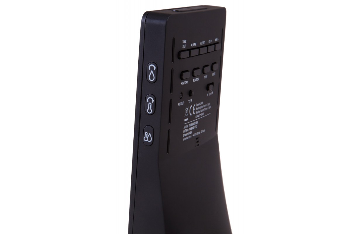 Кнопки управления вынесены на заднюю крышку и боковые панели метеостанции.