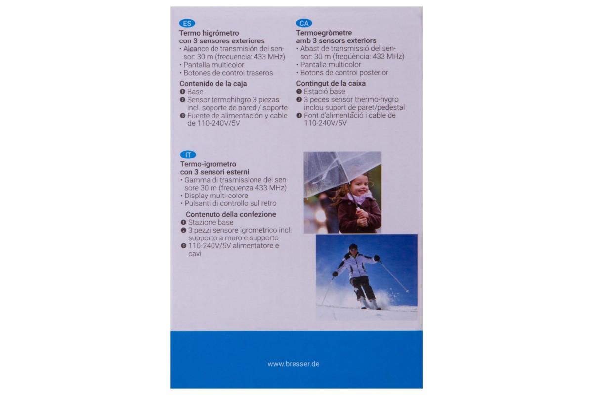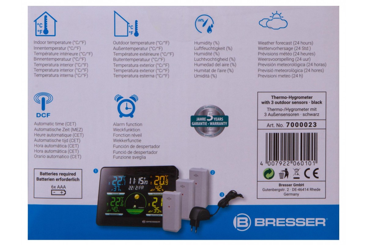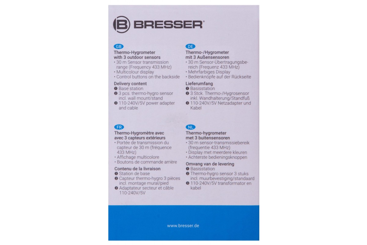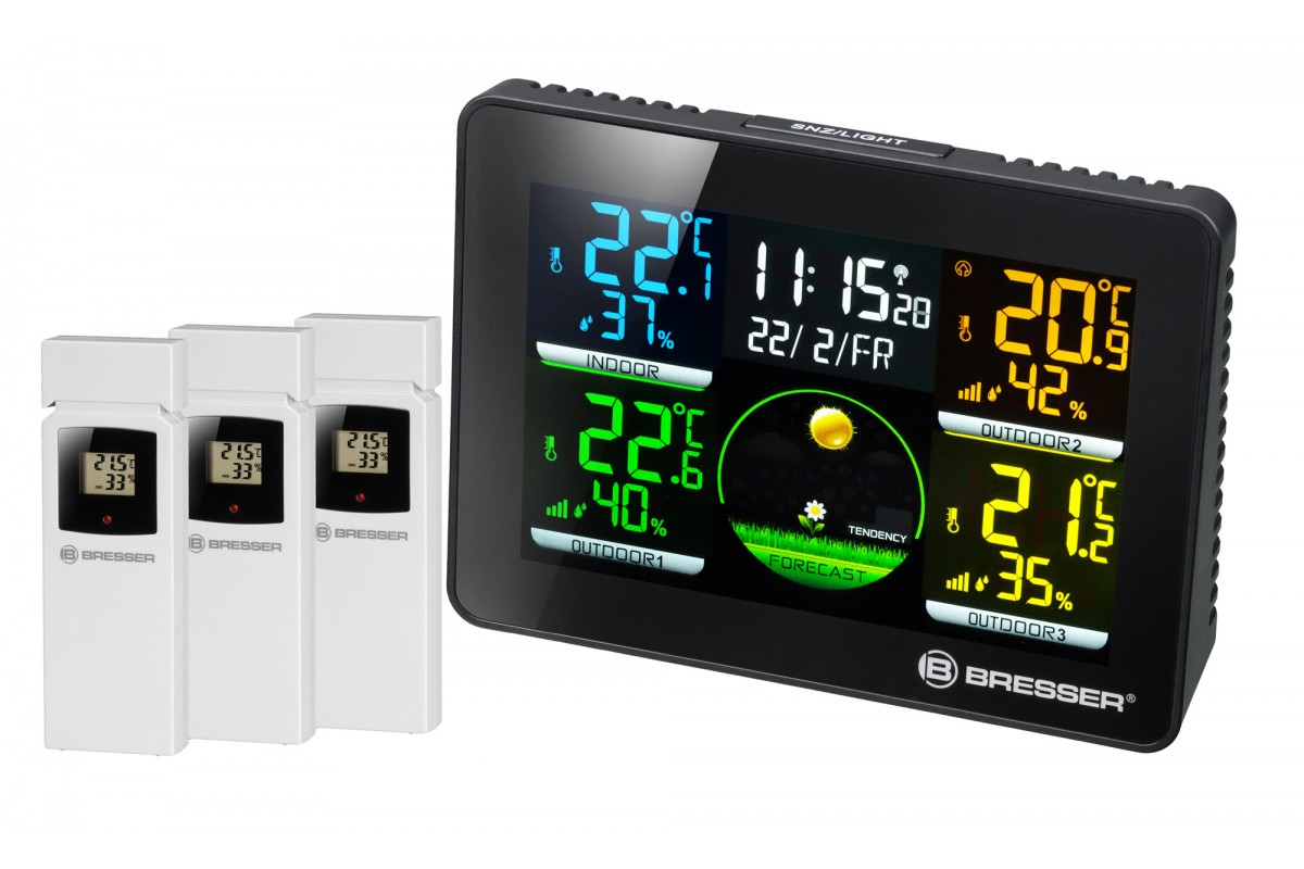 Метеостанция Bresser Thermo Hygro Quadro NLX позволяет проводить измерения температуры и влажности воздуха в четырех местах одновременно. В комплекте с ней идут три радиодатчика, которые передают данные на расстояние до 30 метров. Благодаря этому с помощью метеостанции можно проводить мониторинг микроклимата в загородных домах, просторных квартирах и производственных помещениях. Возможности этого прибора особенно пригодятся, если в помещении высока вероятность появления плесени.