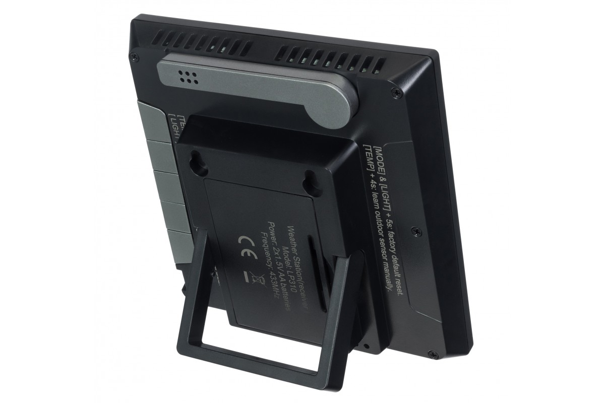 Показатели выводятся на жидкокристаллический экран крупными, удобными для считывания символами, можно выбрать привычные единицы измерения. При питании от сети подсветка станции работает постоянно, при питании от батареек – включается на время.