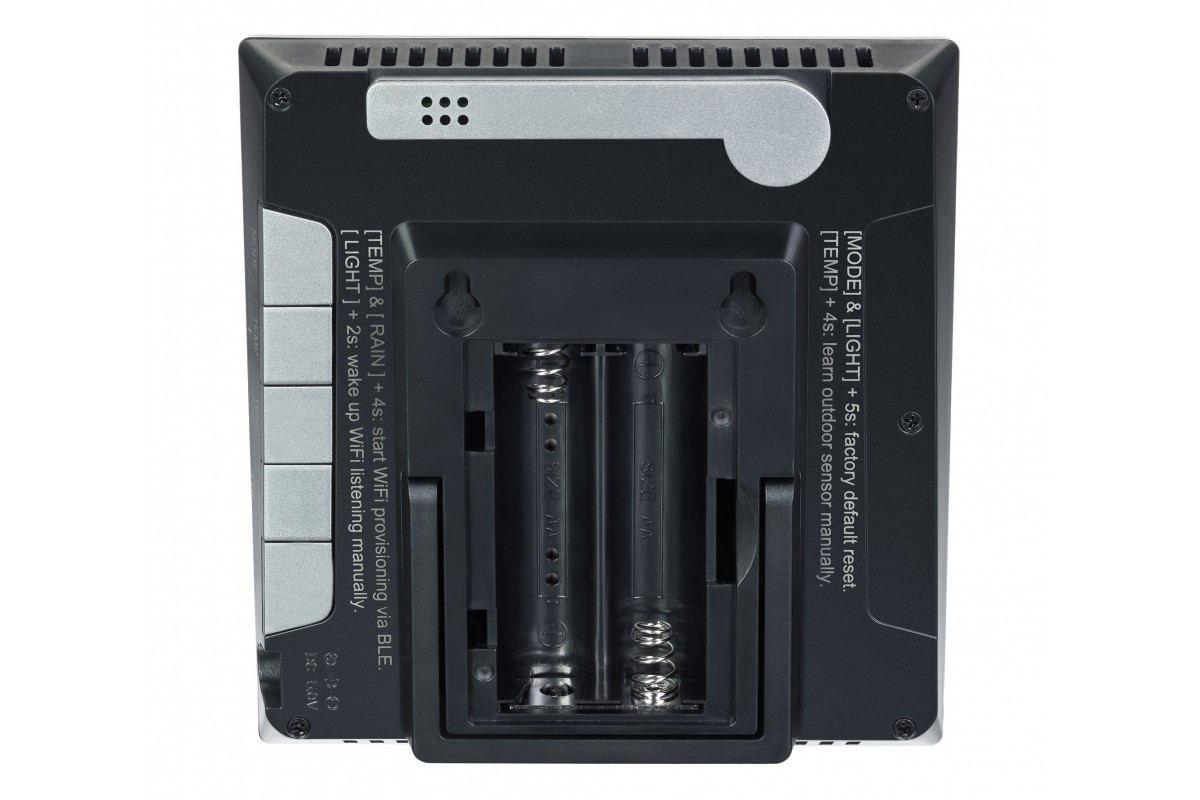 • Возможность подключения к Wi-Fi для обмена информацией с погодным сервером, данные станут доступны для просмотра из мобильного приложения