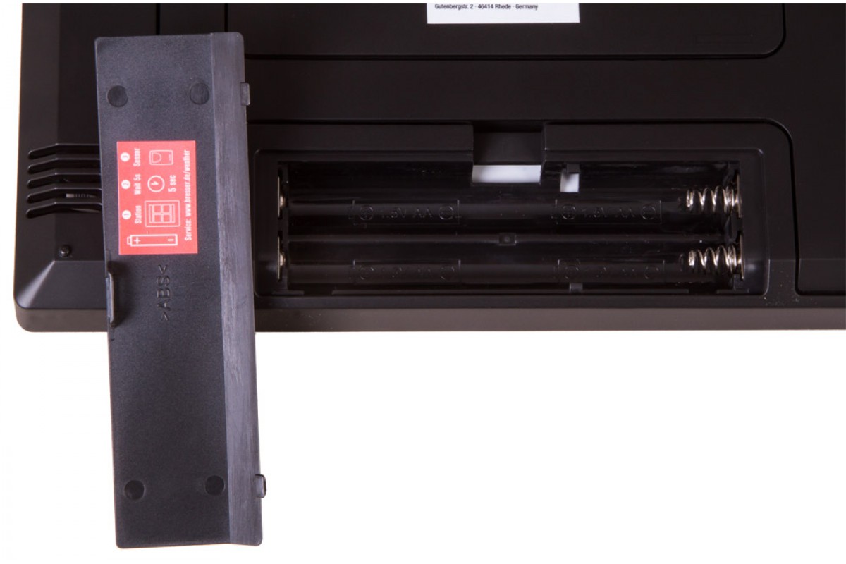 Метеостанцию можно устанавливать на подставку или закреплять на стене. Для работы метеостанции требуются батарейки (нет в комплекте).