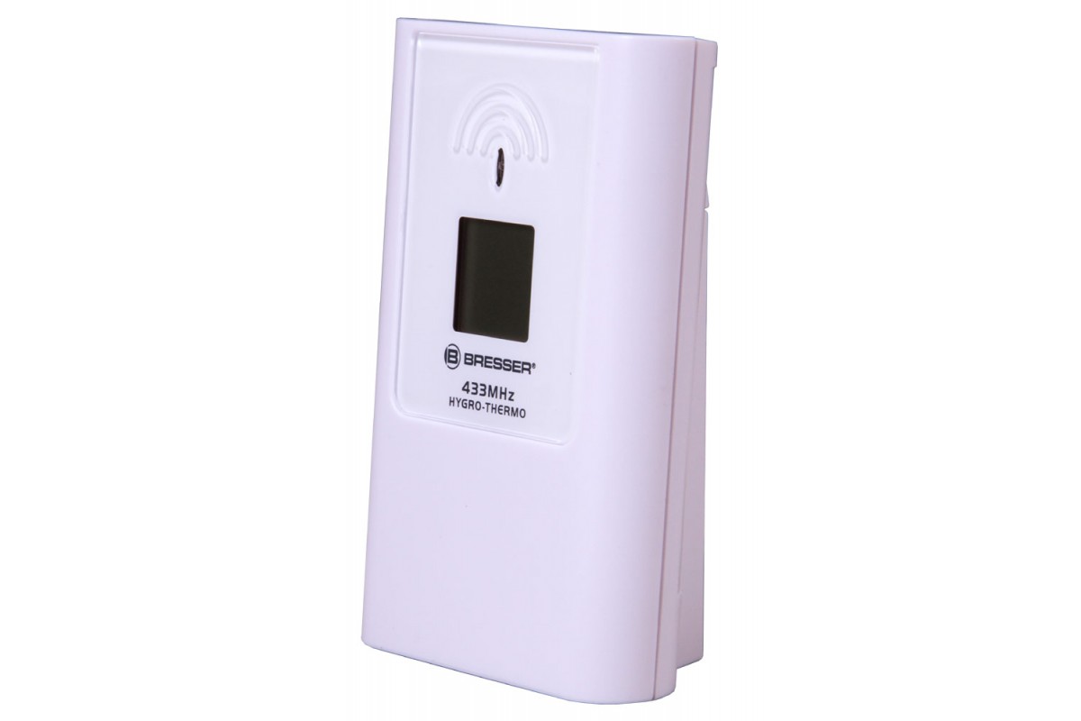 Наружный датчик можно установить на расстоянии до 30 метров от основного модуля. Провода не требуются. Передача данных происходит через радиоканал. Основной модуль может работать одновременно с 3 датчиками, но дополнительные приобретаются отдельно. У датчика есть небольшой экран, на котором можно увидеть текущие измерения.