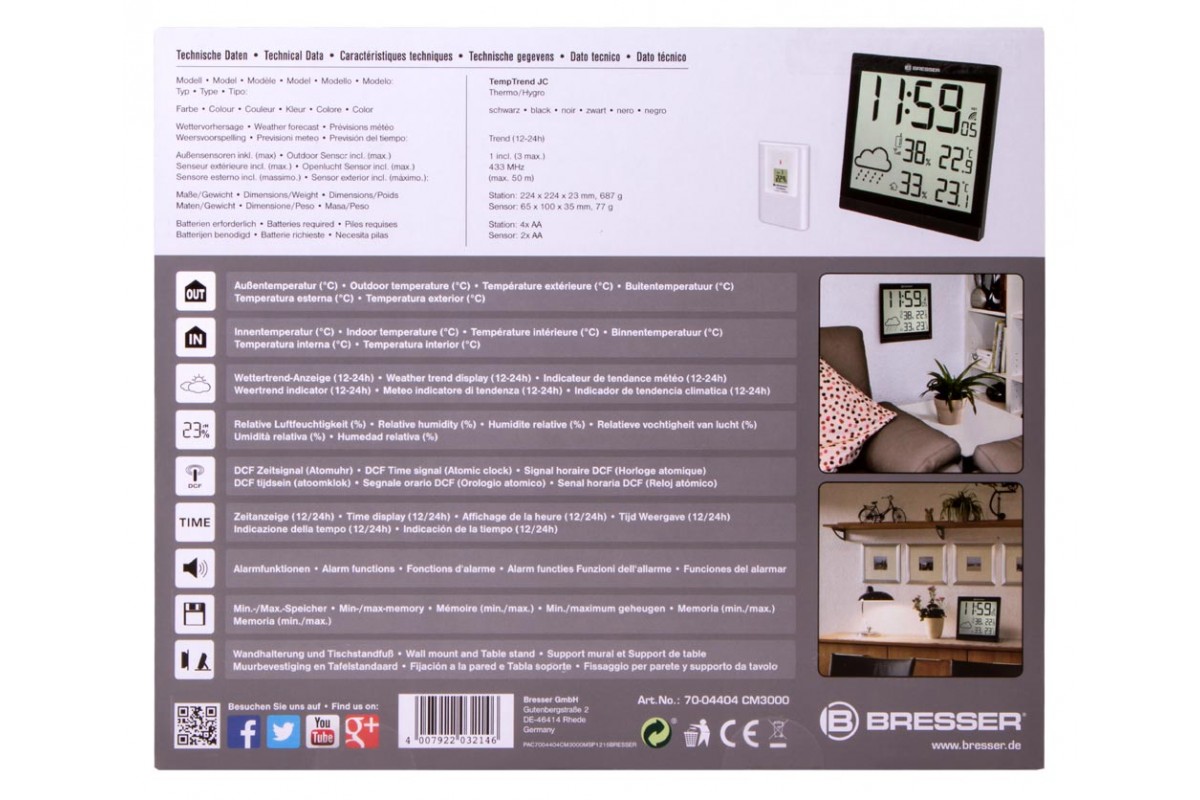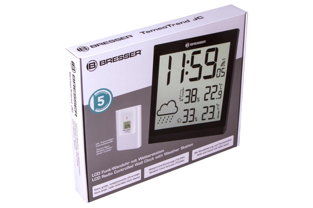Метеостанция Bresser TemeoTrend JC LCD создана для домашнего использования и поможет вам контролировать микроклимат дома и быть в курсе погоды на улице. Она представляет собой основной модуль, на который поступает вся измеряемая информация, и наружный датчик, отвечающий за измерения снаружи помещения. Метеостанция измеряет температуру и влажность воздуха. В ней есть и встроенные часы с будильником, которые всегда подскажут вам, сколько сейчас времени.