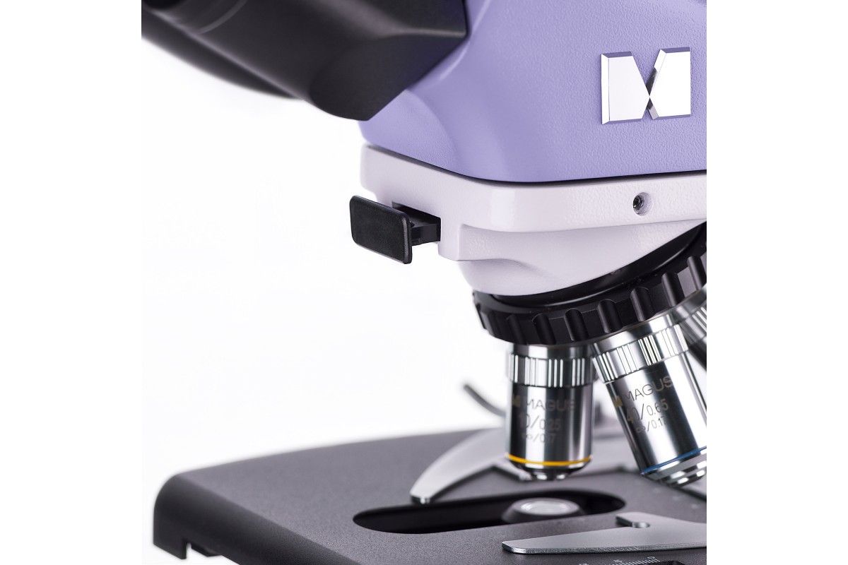 Тринокулярная визуальная насадка с оптикой, рассчитанной на бесконечность. Тубусы насадки вращаются на 360°. Пользователь выбирает высоту выноса зрачка в соответствии с собственным ростом. Цифровая камера устанавливается в вертикальный тубус с каналом визуализации.