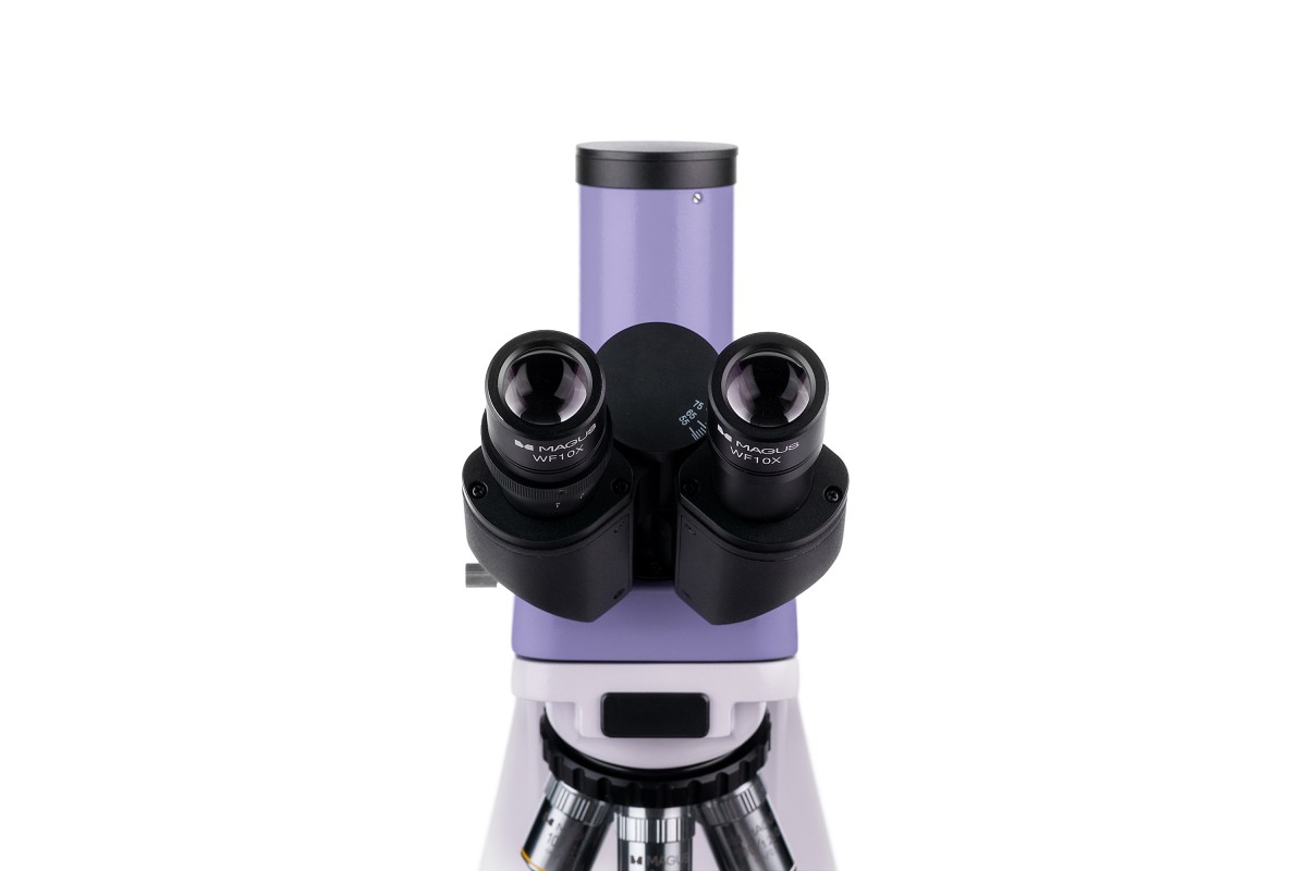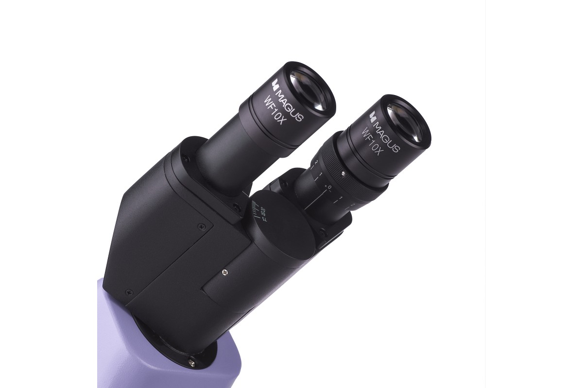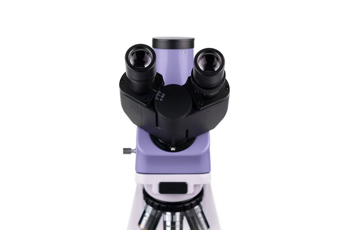 Тринокулярная визуальная насадка с оптикой, рассчитанной на бесконечность. Тубусы насадки вращаются на 360°. Пользователь выбирает высоту выноса зрачка в соответствии с собственным ростом. Цифровая камера устанавливается в вертикальный тубус с каналом визуализации.