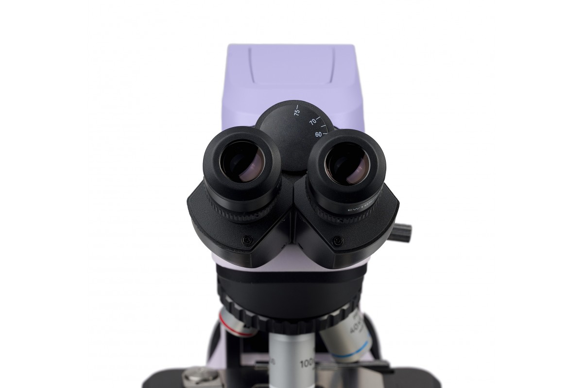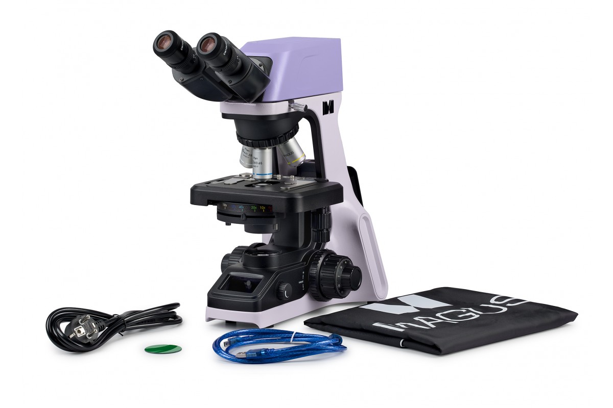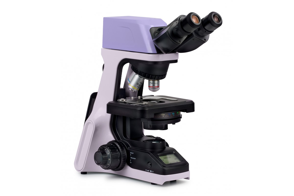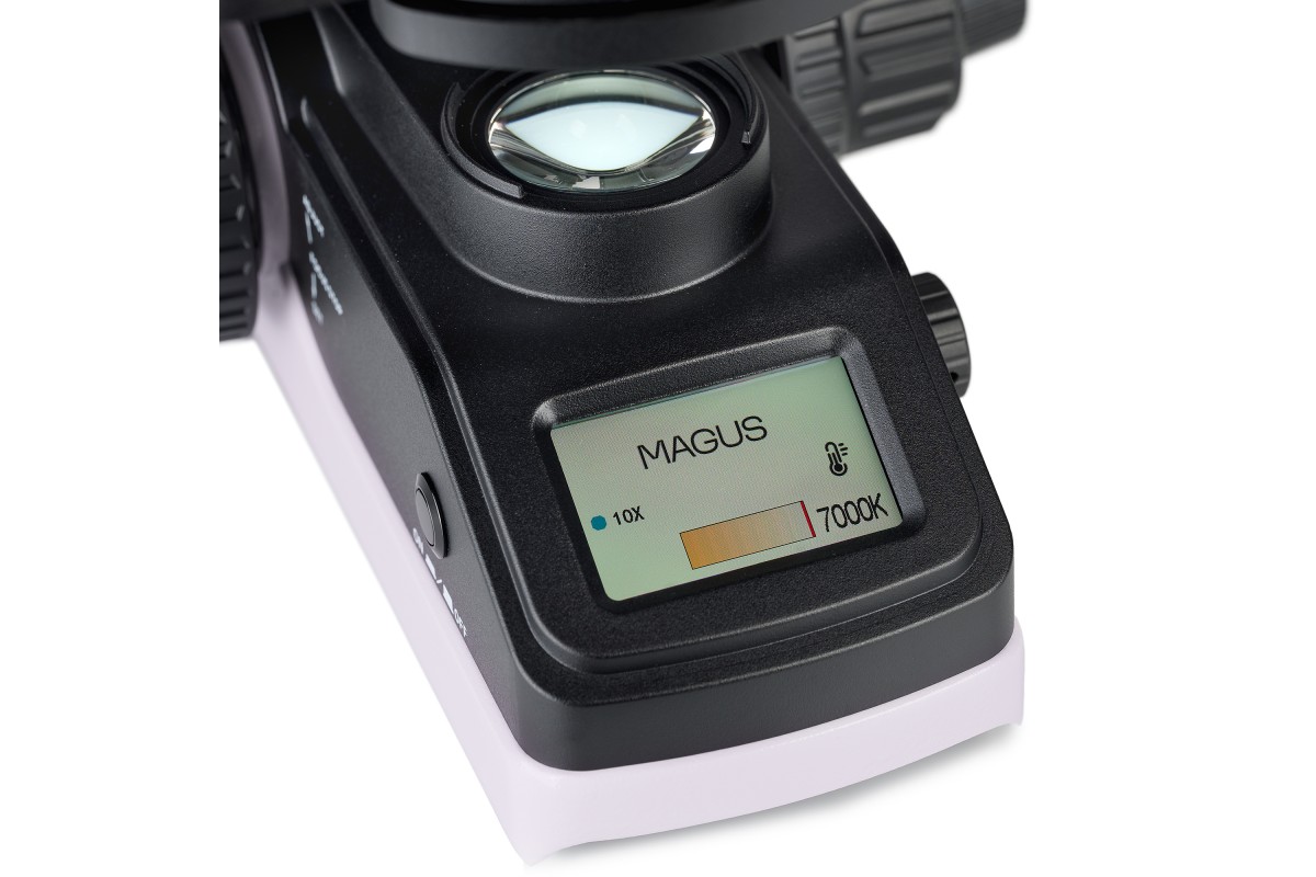 MAGUS Bio DH240 – идеальное решение для студенческих практик и исследований. Компактный и легкий микроскоп легко хранить в учебном корпусе, его можно разместить даже на верхних полках стеллажей или в небольшом шкафу. Бинокулярная визуальная насадка дополнена цифровой камерой: теперь исследования можно фиксировать на фото и видео. Важная особенность этого микроскопа – функция интеллектуального управления освещением: устройство автоматически подстраивает интенсивность света при смене увеличения. Микроскоп оборудован ЖК-экраном, на котором отображаются настройки работы.