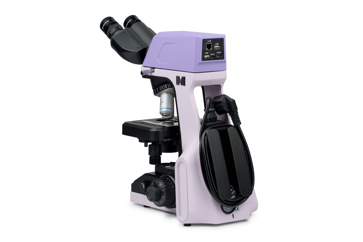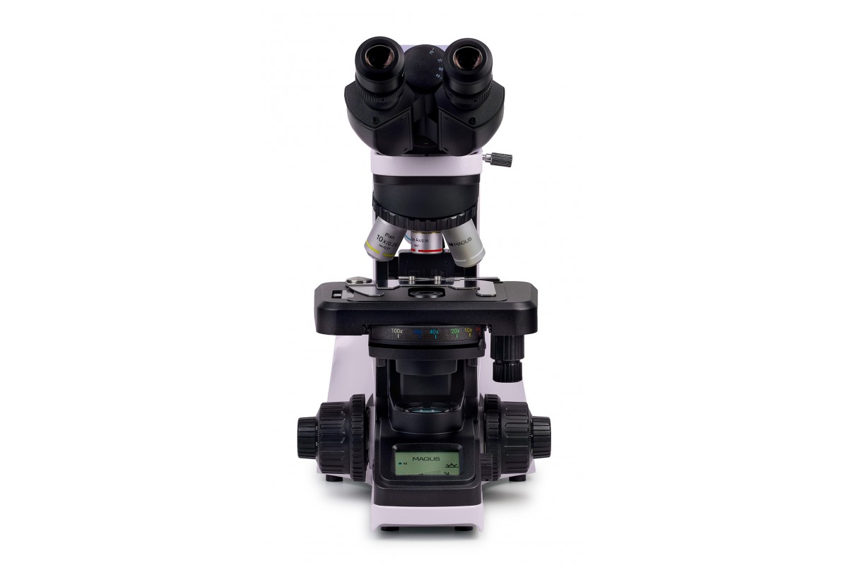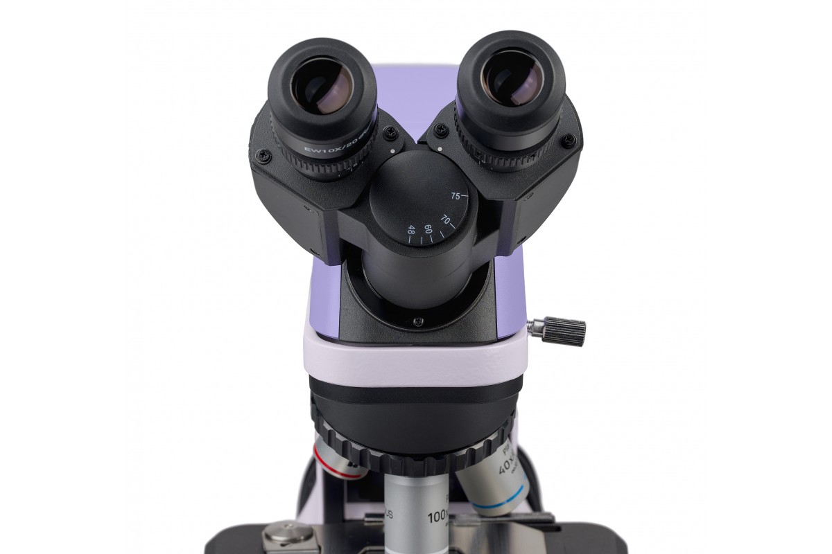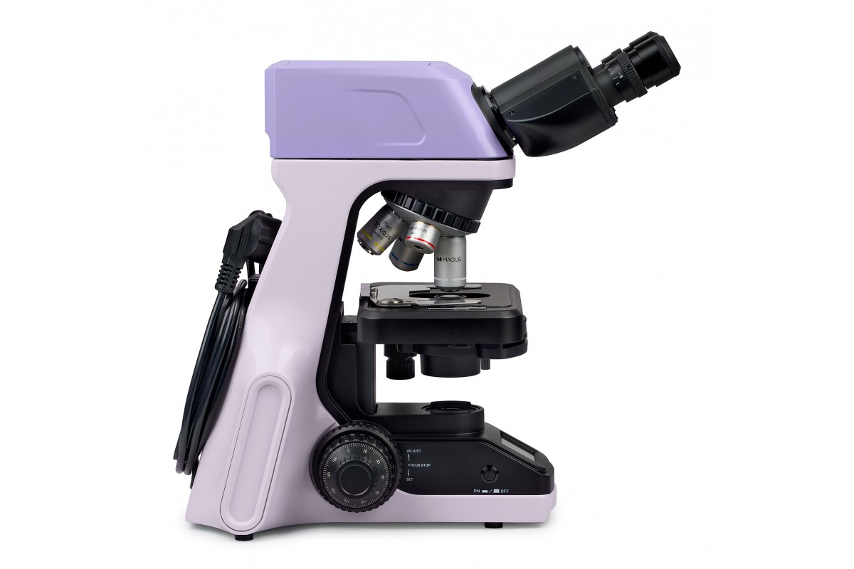 MAGUS Bio DH240 – идеальное решение для студенческих практик и исследований. Компактный и легкий микроскоп легко хранить в учебном корпусе, его можно разместить даже на верхних полках стеллажей или в небольшом шкафу. Бинокулярная визуальная насадка дополнена цифровой камерой: теперь исследования можно фиксировать на фото и видео. Важная особенность этого микроскопа – функция интеллектуального управления освещением: устройство автоматически подстраивает интенсивность света при смене увеличения. Микроскоп оборудован ЖК-экраном, на котором отображаются настройки работы.