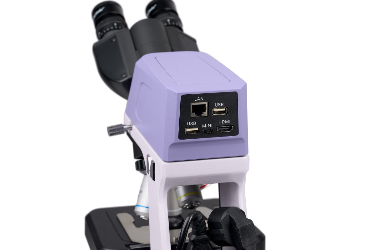 Цифровая камера, встроенная в визуальную насадку, производит фото- и видеоматериалы в разрешении 4К (3840x2160 пикс). 8-мегапиксельная матрица позволяет рассмотреть мельчайшие детали объекта. Наиболее эффективно сочетать камеру с объективами на 4 крата и 10 крат. Кроме своего прямого назначения камера поможет в точной фокусировке микроскопа. Встроенный интерфейс Wi-Fi предназначен для передачи материалов на компьютер.