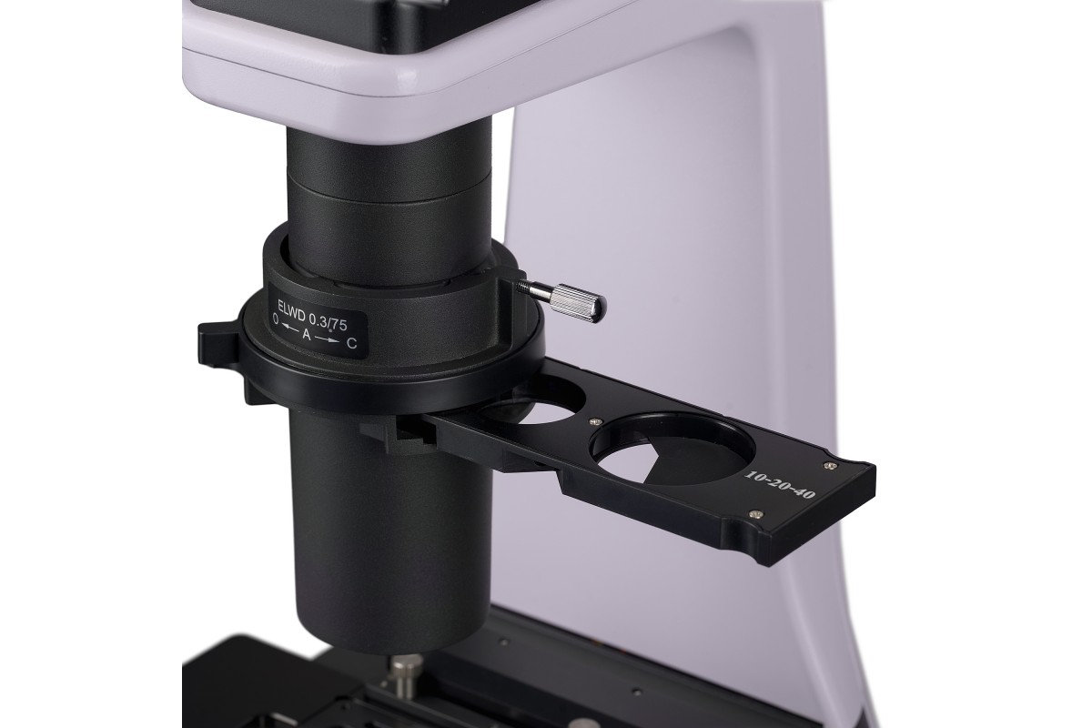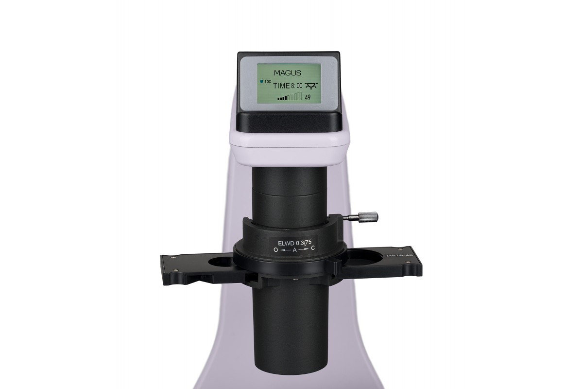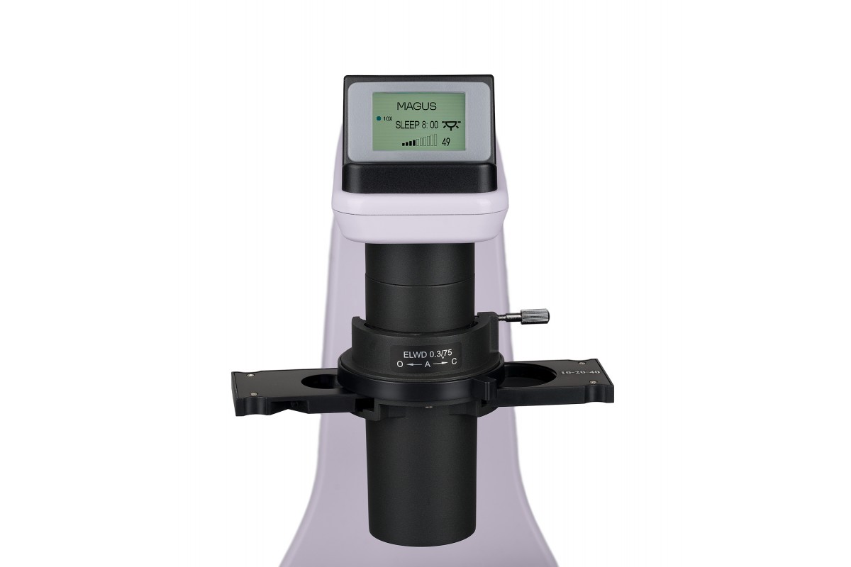 Объективы разного увеличения пропускают свет в разной степени, поэтому каждый раз при смене объектива требуется регулировка яркости света. Кроме того, яркость резко увеличивается при переключении с объектива большего увеличения на объектив меньшего увеличения. Резкое увеличение яркости вызывает утомление глаз. MAGUS Bio V360 оборудован интеллектуальным управлением яркости света. Микроскоп запоминает яркость для каждого объектива, которую выбрал пользователь, и автоматически устанавливает эту яркость при повороте револьвера. Интеллектуальное управление сокращает время на регулировку яркости. MAGUS Bio V360 повышает комфорт пользователя и экономит время даже когда работа требует частой смены увеличения.
