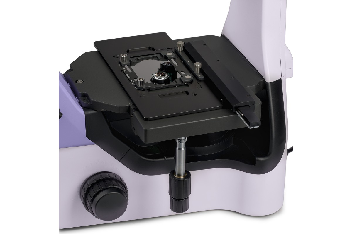 Предметный столик неподвижный. На столик установлен специальный механизм, который перемещает лабораторную посуду в двух взаимоперпендикулярных направлениях. Плавное тонкое перемещение объекта обеспечит точность исследований – ни один участок исследуемого объекта не будет пропущен.