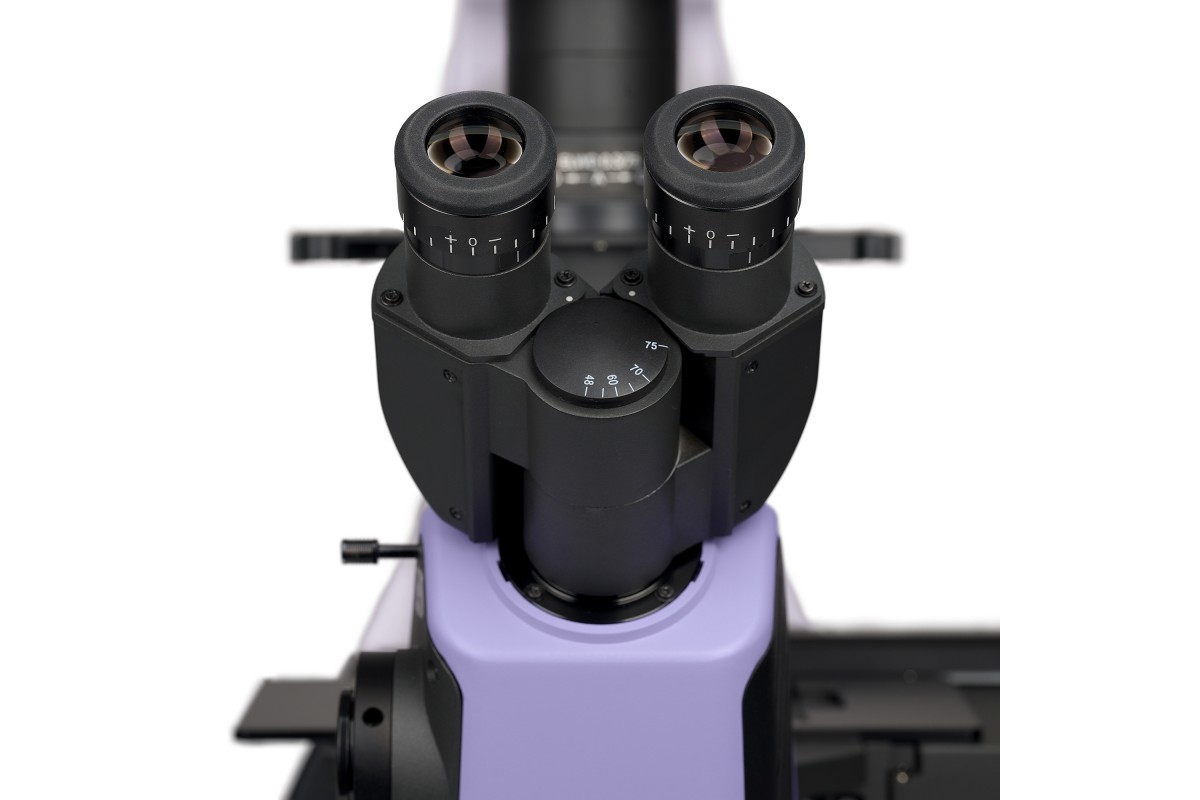 Бинокулярная визуальная насадка с оптикой, рассчитанной на бесконечность. Цифровая камера устанавливается в боковой канал визуализации на насадке микроскопа. Световой поток переключается 100/0 или 0/100.