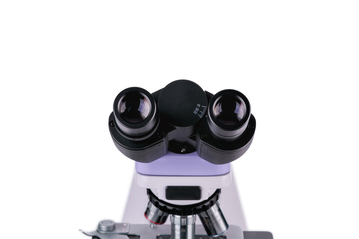 Микроскоп оснащен бинокулярной визуальной насадкой. Диоптрийная коррекция выполняется на левом окулярном тубусе, в него же можно установить цифровую камеру (приобретается отдельно). Окулярные тубусы вращаются на 360° для подстройки высоты выходного зрачка под рост наблюдателя.