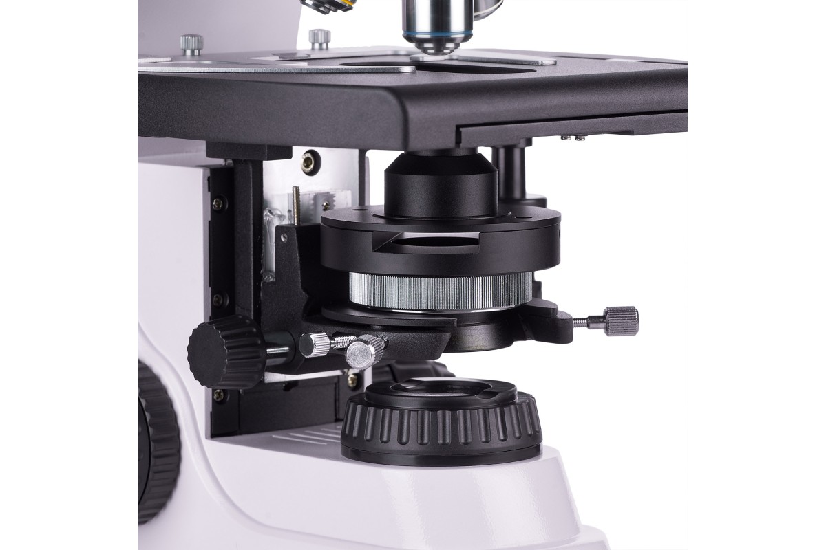 Тонкую настройку освещения выполняют при помощи апертурной диафрагмы конденсора и полевой диафрагмы. Настройка освещения по Кёлеру значительно повышает яркость и читаемость изображения. В конденсоре Аббе, положение которого можно регулировать в двух плоскостях (вертикаль/горизонталь), есть слот для установки слайдера: темнопольного или фазового на выбор. С помощью слайдера переключение между методами наблюдений осуществляется быстрее и удобнее.