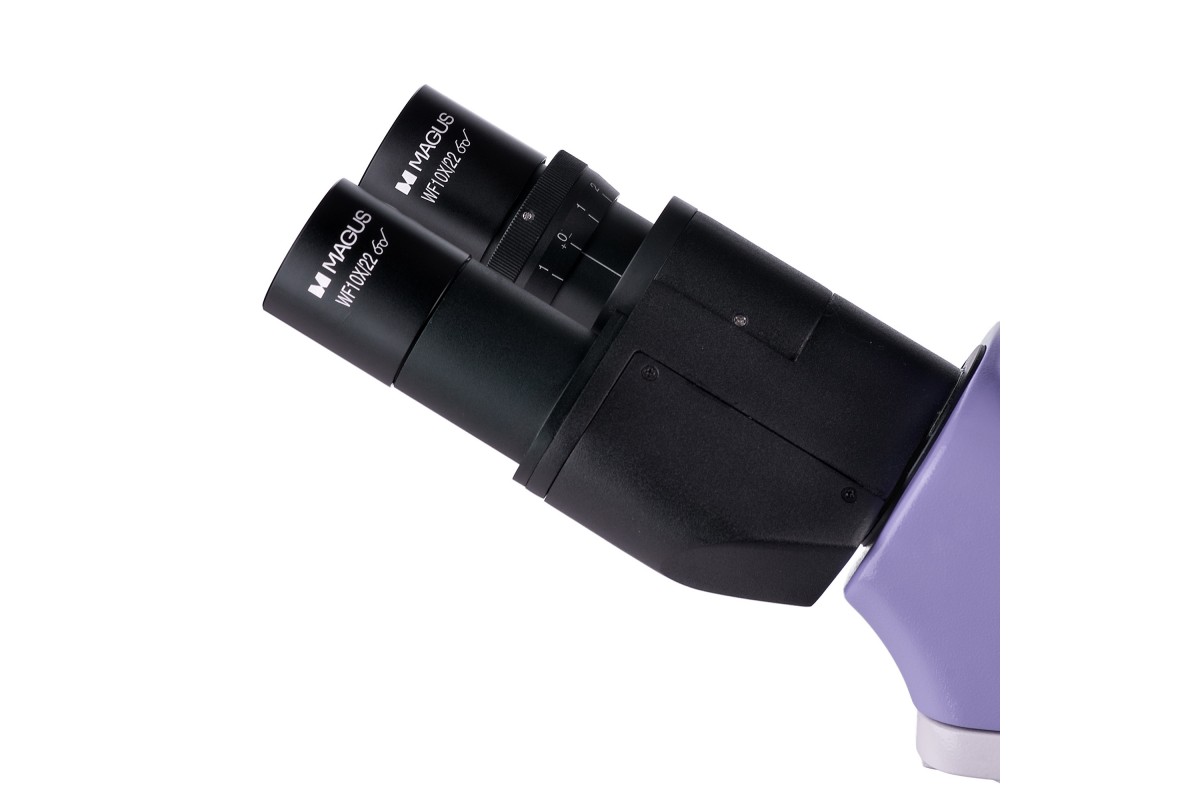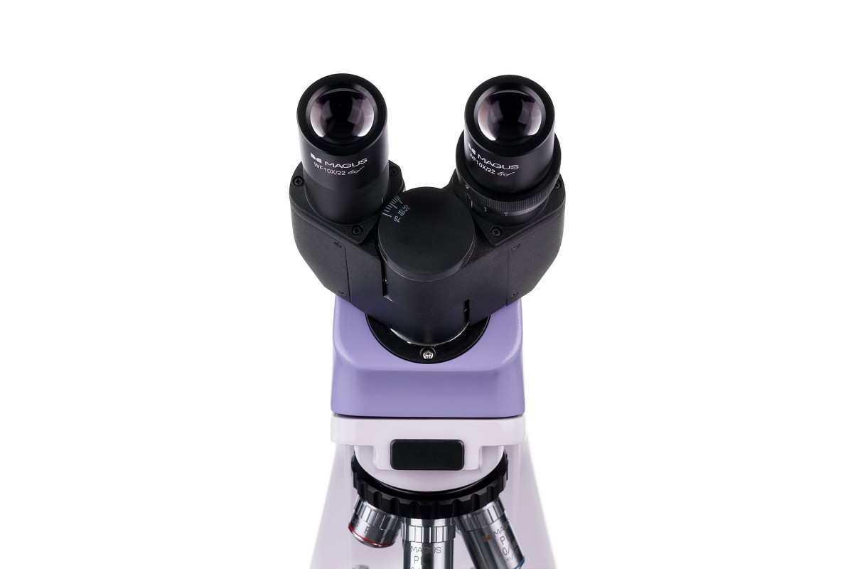 В оптической схеме используется бинокулярная насадка, в один из окулярных тубусов которой можно установить цифровую камеру. На левом тубусе корректируются диоптрии. Особенностью насадки является то, что ее окулярные тубусы вращаются на 360°, – это позволяет устанавливать высоту взора в соответствии с ростом пользователя.