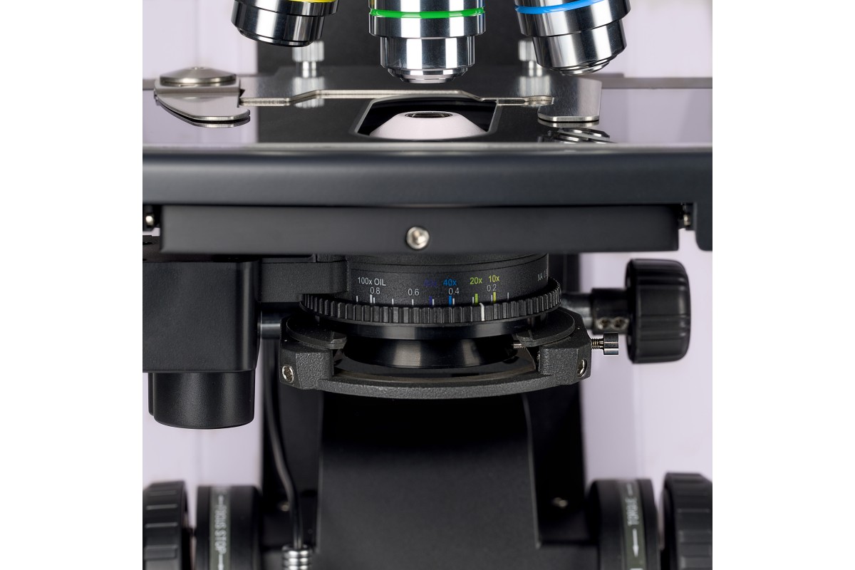 Моторизированные револьвер и конденсор автоматизируют процесс переключения объективов и регулировки системы освещения для каждого объектива. Пользователь не отвлекается на настройки, его внимание сфокусировано на исследованиях, скорость выполнения операций становится выше.