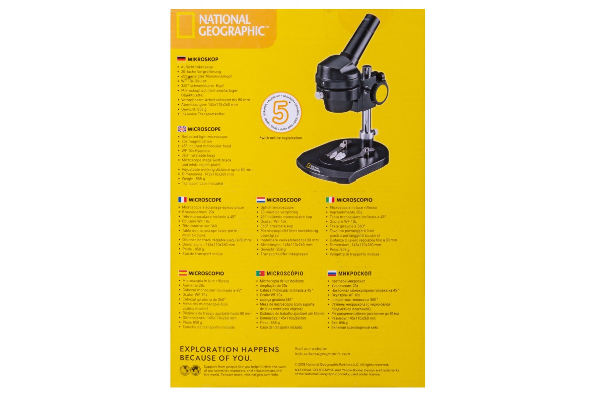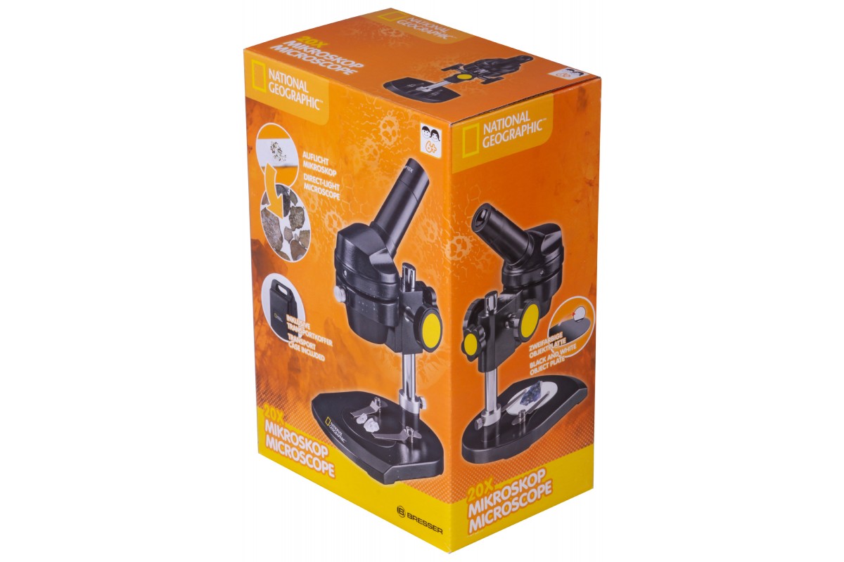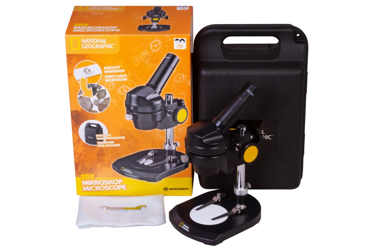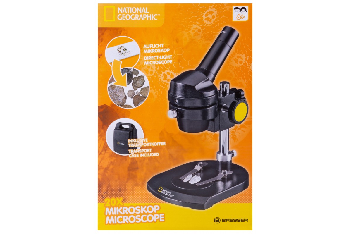 Микроскоп Bresser National Geographic 20x – это простой в управлении, надежный и безопасный оптический прибор, с которым легко справится даже маленький ребенок. Микроскоп не подключается к сети, не нуждается в батарейках, и с его помощью можно изучать множество объектов окружающего мира – камни, листья, монеты и многое другое.
