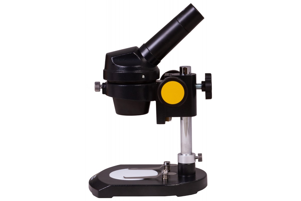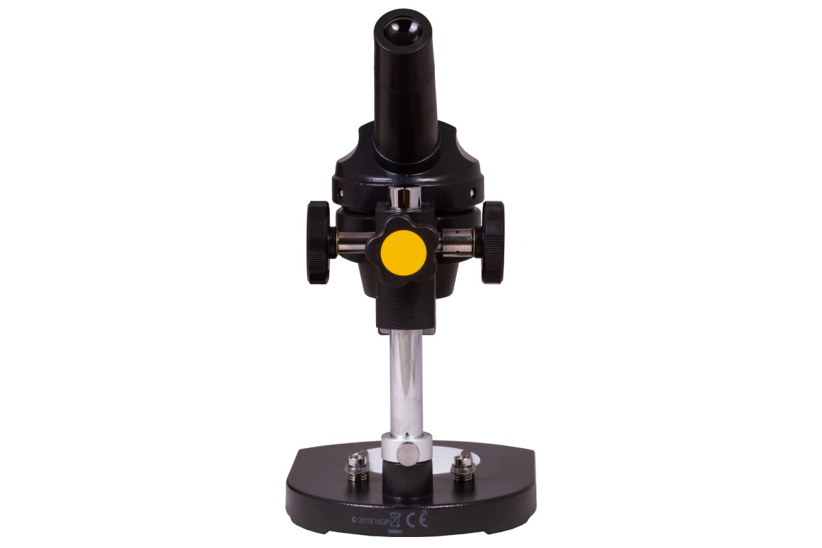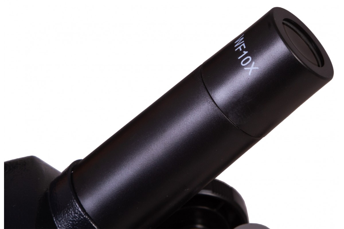 Для наблюдений используется монокулярная насадка, которую можно разворачивать в удобную сторону. Она поворачивается на 360°. Наклон насадки составляет 45°, поэтому микроскоп удобен при длительных наблюдениях. Увеличение оптики составляет 20 крат.