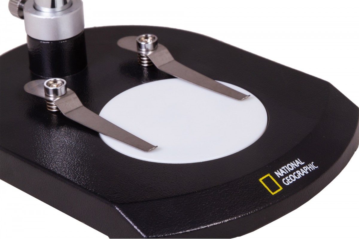 В микроскопе нет подсветки, поэтому все исследования ведутся при естественном освещении. Образцы размещаются на предметном столике – черно-белой пластине, на которой удобно изучать и очень темные, и очень светлые объекты. Микроскоп передает четкую и контрастную картинку.