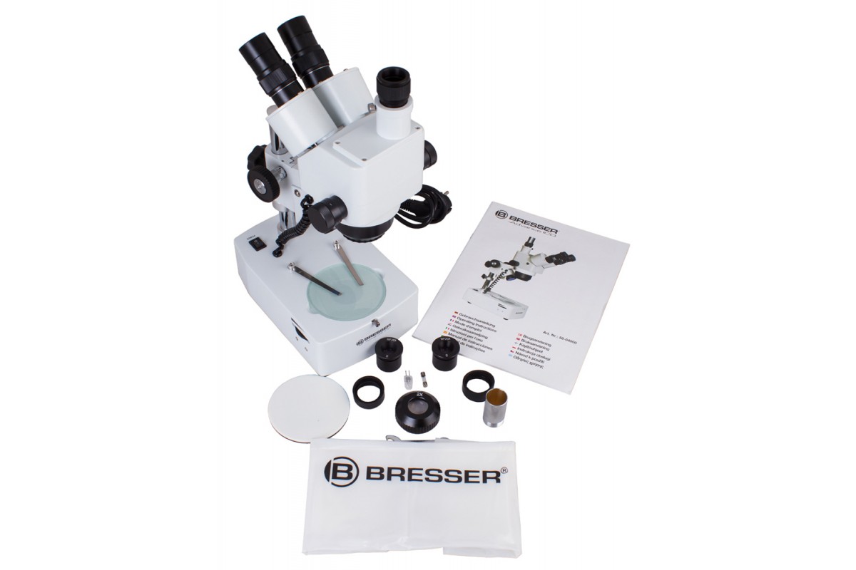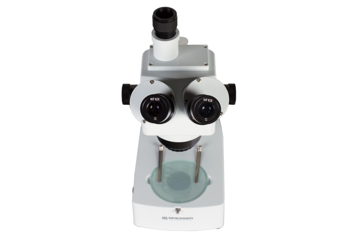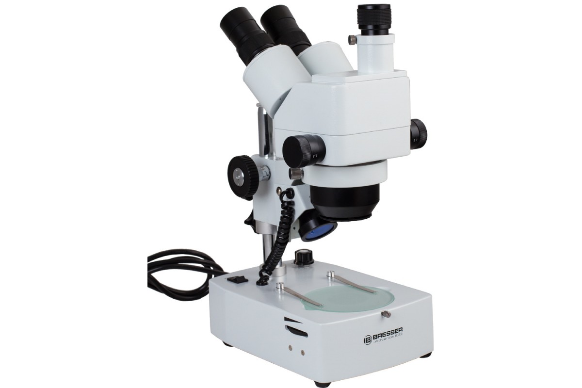 Bresser Advance ICD 10x-160x – высококачественный тринокулярный стереомикроскоп для профессионального применения с увеличением от 10 до 160х. Большое рабочее расстояние, стереоскопическое изображение объекта позволяют производить точные манипуляции прямо на предметном столике. У пользователя есть возможность работы как в проходящем, так и отраженном свете. Микроскоп отлично подойдет для ремонта ювелирных изделий. Тринокулярная насадка вращается на 360°. Увеличительный прибор обладает возможностью коррекции диоптрий и межзрачкового расстояния. В осветителях используются мощные галогенные лампы, их яркость можно регулировать. В комплекте: микроскоп в металлическом корпусе объектив: 1 шт. окуляры: 2 пары широкоугольных окуляров (WF10x, WF20x) диски: 2 шт. х 95 мм (белый, черный) фильтр: синий резиновые наглазники защитный чехол трансформатор (вмонтирован)