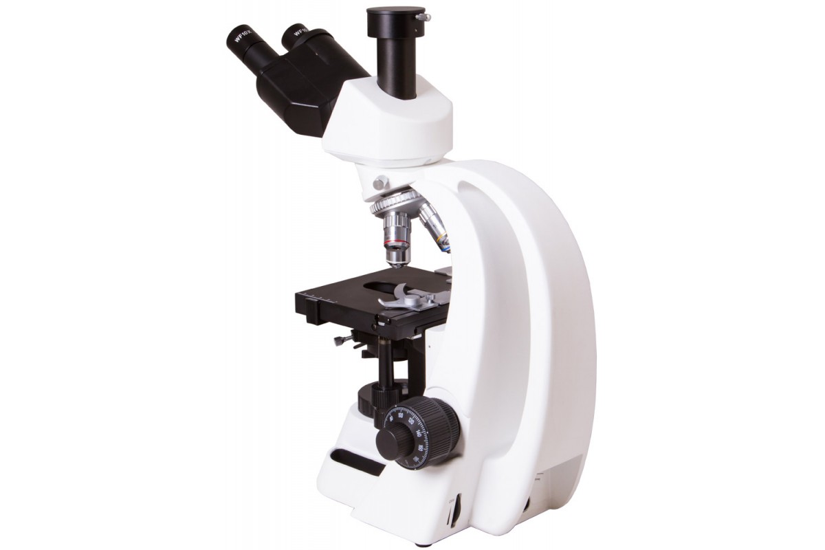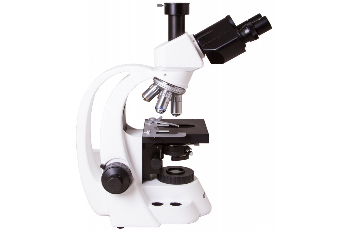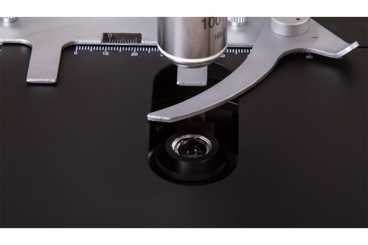 Микроскоп оборудован револьверным устройством на 4 объектива, обеспечивающим быструю смену увеличений во время исследований. В разных сочетаниях входящие в комплект окуляры и объективы позволяют получать увеличения в диапазоне от 40 до 1000 крат.