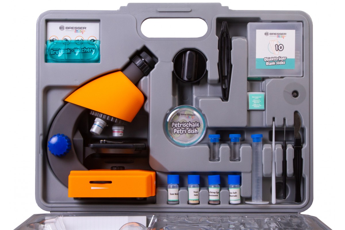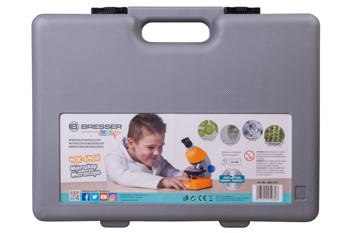 Микроскоп Bresser Junior 40–640x с набором для опытов создан специально для юных исследователей микромира. С его помощью можно изучать любые прозрачные микропрепараты, в том числе биологические. Микроскоп прекрасно подходит для расширения кругозора в области микробиологии и химии, станет отличным помощником во внеклассных занятиях ребенка и проведении научных опытов дома.