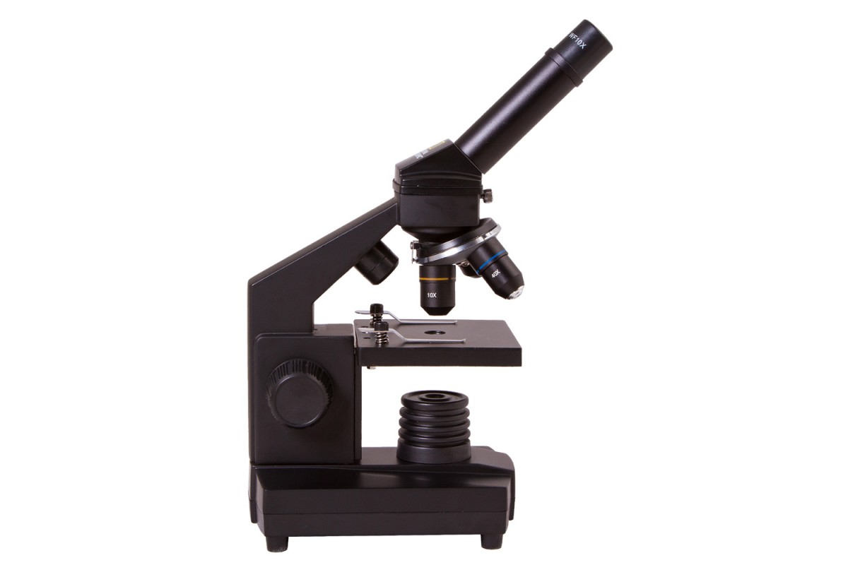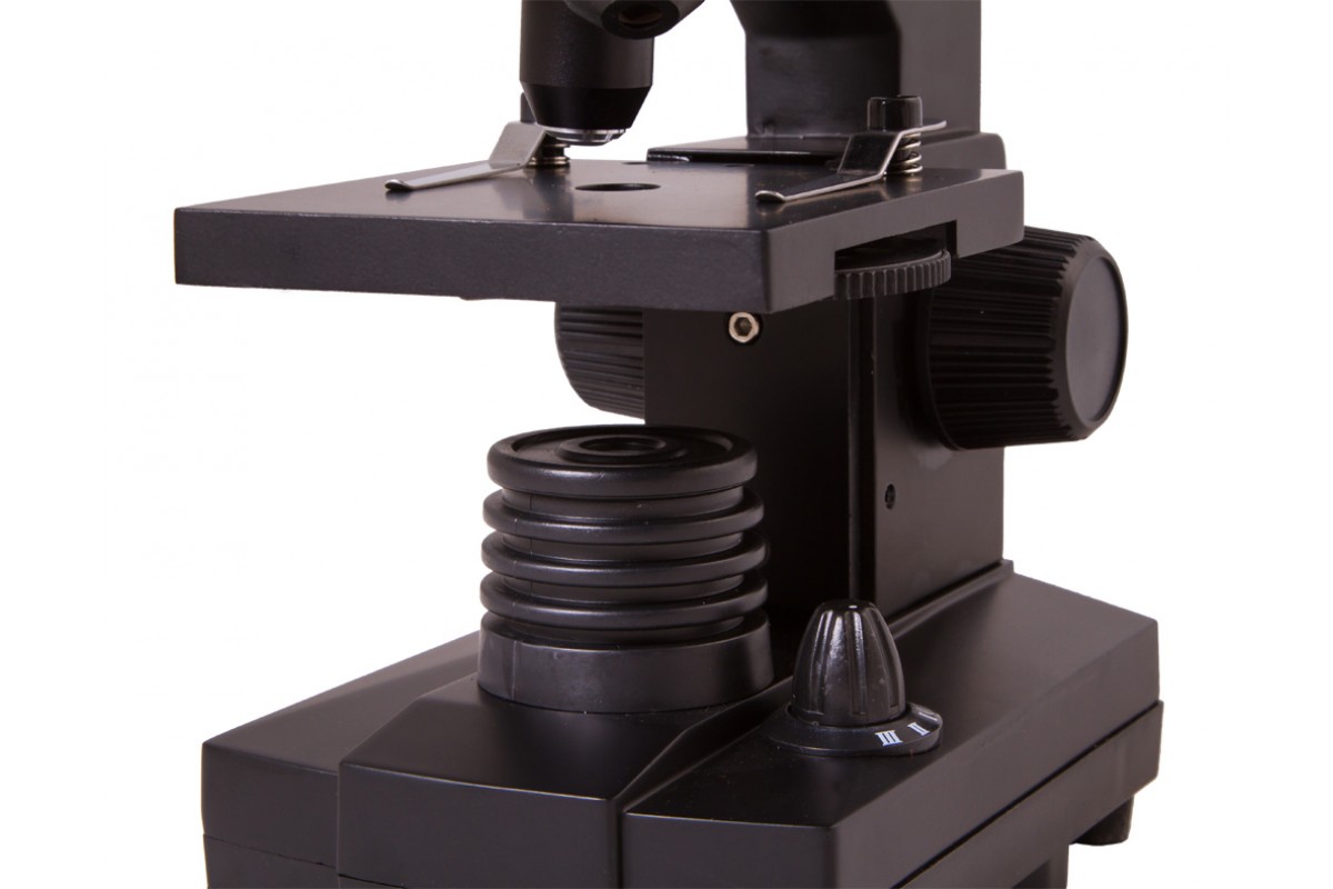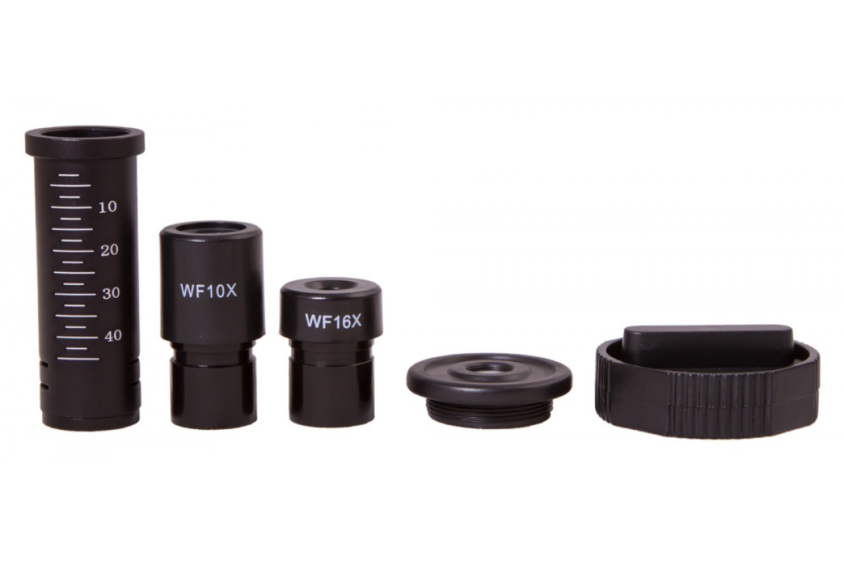 Револьверное устройство микроскопа рассчитано на 3 объектива. В окулярную трубку можно установить или оптический окуляр (в комплекте их два), или цифровую камеру. Последняя позволит передавать изображение исследуемых образцов на экран компьютера. Так все проводимые исследования можно сохранить в память компьютера в видео фотографий или видеороликов. Это особенно полезно при проведении видеопрезентаций или создании цифровых архивов наблюдений.