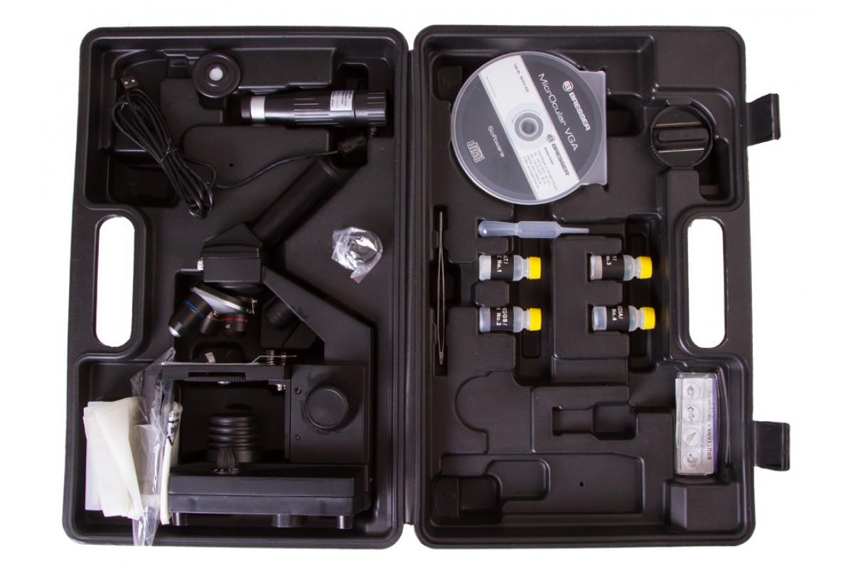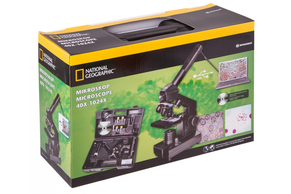 Цифровой микроскоп Bresser National Geographic 40–1024x – прекрасный инструмент для увлеченного наукой ребенка или взрослого. Это простой и надежный оптический прибор с большим количеством возможностей. В комплект поставки включены не только необходимые оптические аксессуары, но и набор для проведения опытов, инкубатор для разведения артемии, инструменты для работы с микропрепаратами, а также пылезащитный чехол и кейс для транспортировки и хранения.