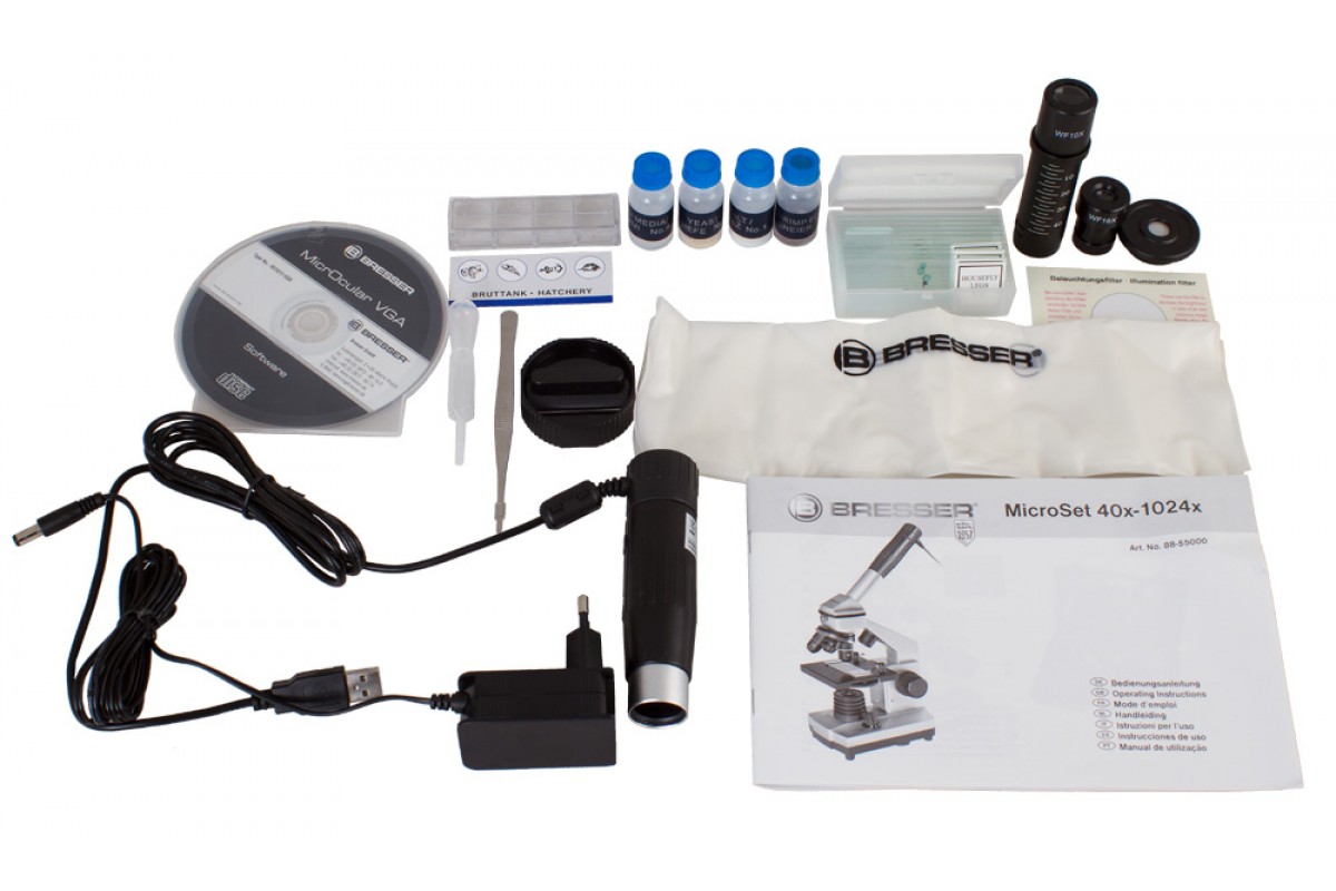 Микроскоп Bresser Junior 40x–1024x используется для изучения прозрачных микропрепаратов в проходящем свете. Прибор можно использовать как на школьных уроках, так и для самостоятельных занятий. Данная модель комплектуется кейсом для переноски. На оптические элементы нанесено многослойное просветляющее покрытие, поэтому картинка получается резкой и четкой. Прибор оснащен тремя объективами. В комплект входит два окуляра с увеличением 10 и 16 крат, а также окулярная камера. Оптическое увеличение модели составляет 40–640 крат, а при использовании цифровой камеры – 10–1024 крат. Механические части микроскопа отличаются прочностью и надежностью. Механизм фокусировки имеет плавный ход. Комплектация: