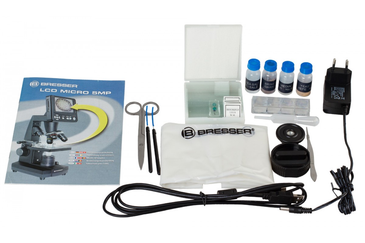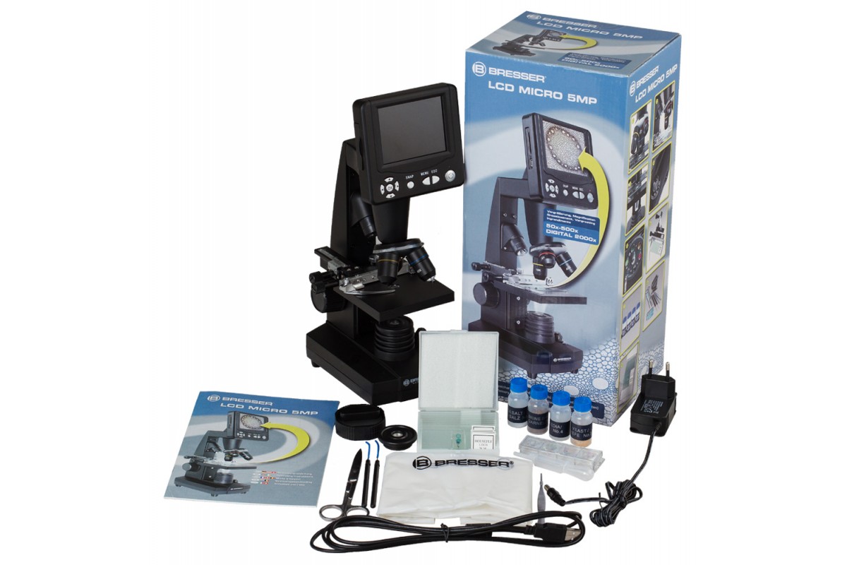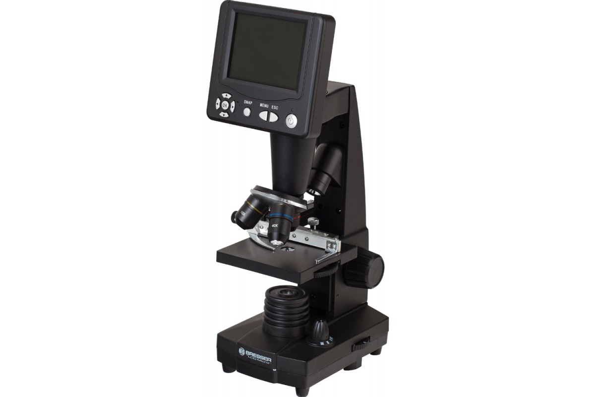 Увеличение: 40–1600 кратBresser LCD 40x–1600x – это качественный цифровой микроскоп, предназначенный для изучения прозрачных и непрозрачных микропрепаратов. Изображение выводится на встроенный цветной дисплей с диагональю 3,5". Предусмотрены слоты для карт памяти. Микроскоп оснащен револьверным устройством с тремя объективами, обеспечивающими оптическое увеличение от 100 до 400 крат. Благодаря цифровому зуму можно получить увеличение до 1600 крат. Предметный столик с нониусом и препаратоводителем позволяет плавно перемещать изучаемый препарат, не касаясь его руками. В комплект входят готовые микропрепараты для изучения. Комплектация: