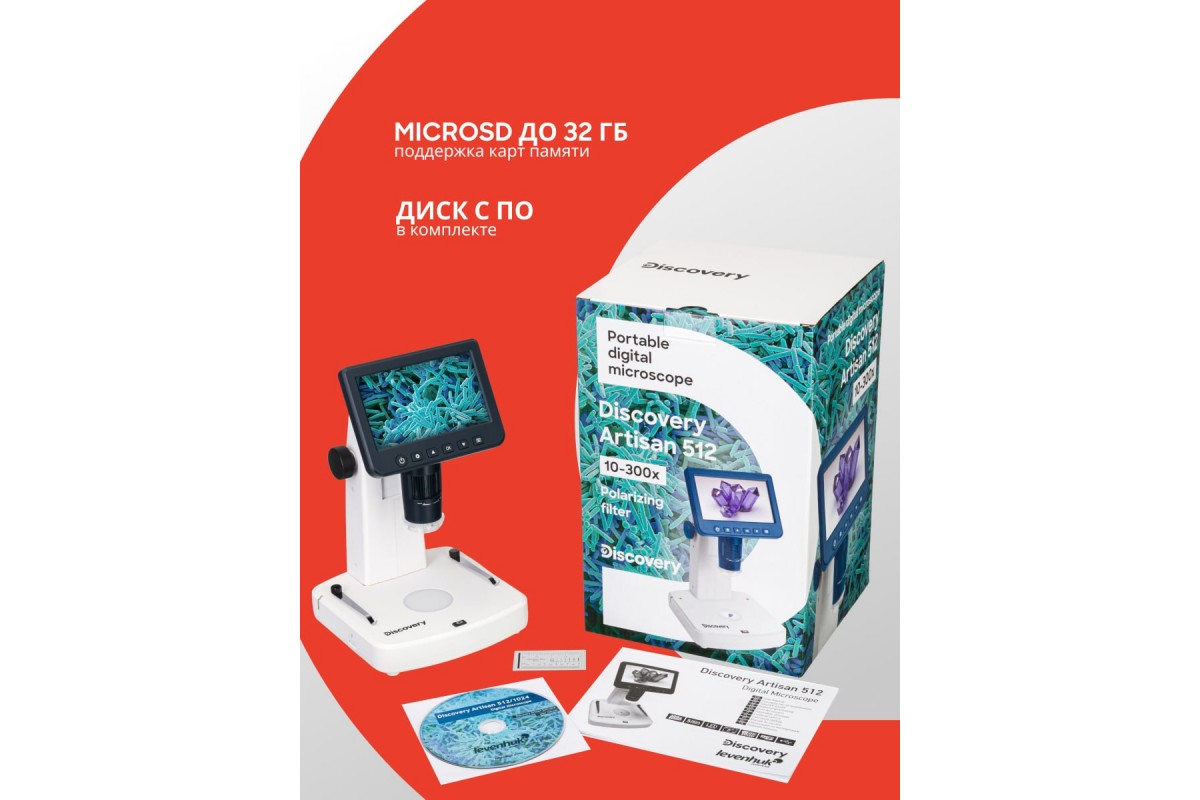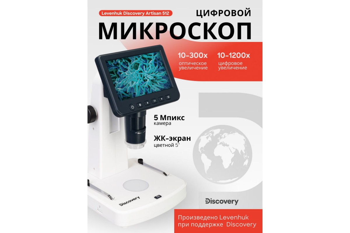 Levenhuk Discovery Artisan 512 – это цифровой микроскоп с ЖК-экраном и 5-мегапиксельной камерой. Он позволяет не только визуально изучать образцы, но также делать фотографии, записывать видео, проводить измерения объектов и обработку кадров. Его возможности помогут в работе с металлами, ювелирными изделиями, электронными платами, небольшими деталями и механизмами, минералами, биологическими образцами и многими другими объектами.