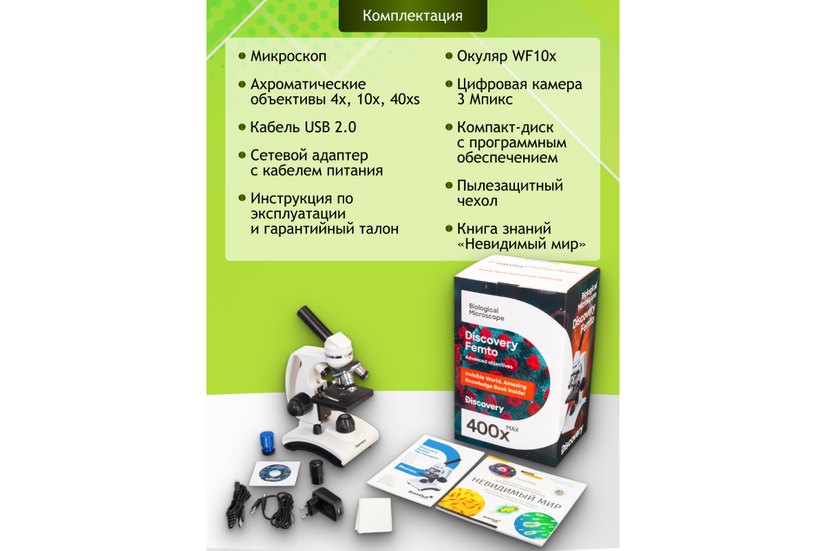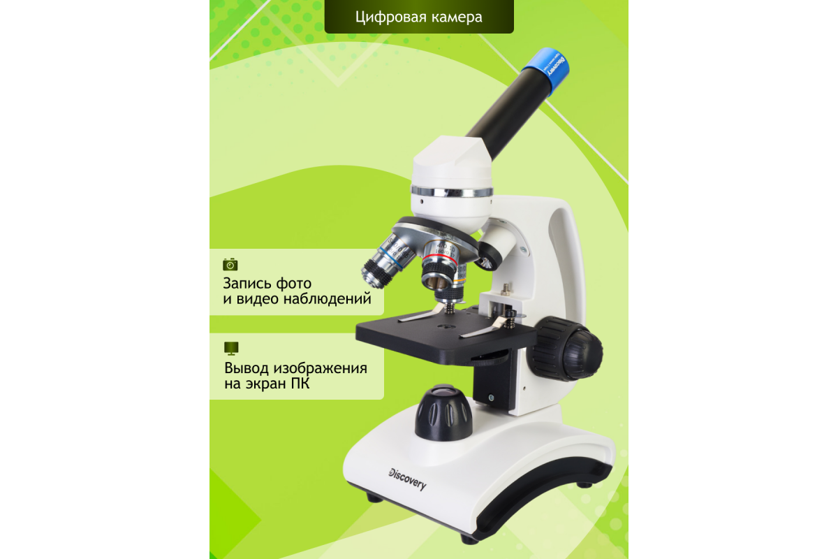 Цифровой микроскоп Levenhuk Discovery Femto Polar – это возможность не только визуально изучать микропрепараты, но и создавать цифровые архивы своих исследований. Благодаря камере 3 Мпикс этот микроскоп умеет выводить картинку с объектива на экран компьютера, делать фото и записывать видео. Камера значительно расширяет возможности прибора, что делает его отличным выбором для учебы и научного хобби. К тому же в комплектацию включена красочная познавательная книга о микромире.