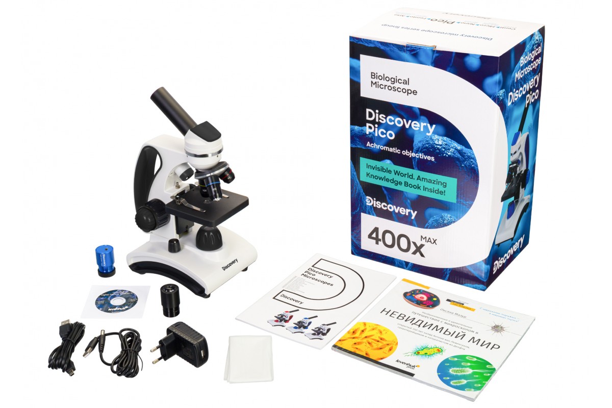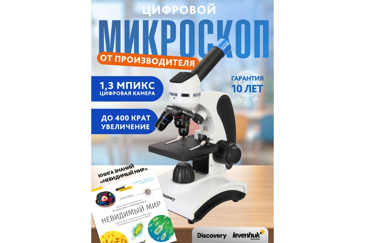 Цифровой микроскоп Levenhuk Discovery Pico Polar снабжен камерой 1,3 Мпикс, которая позволяет передавать изображение на внешний экран в режиме реального времени, а также фотографировать и записывать видео через микроскоп. Эта модель станет хорошим выбором для тех, кто раньше не работал с оптической техникой и хочет быстро и результативно погрузиться в исследование микромира. В качестве руководства к действию в комплектацию включена книга знаний «Невидимый мир».