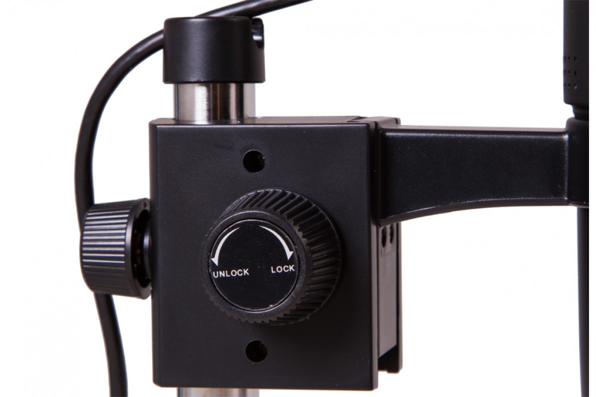 Микроскоп комплектуется надежным штативом для стационарных наблюдений. В нижней его части расположен предметный столик, на котором при помощи препаратодержателей можно зафиксировать образцы. Для оценки размеров образцов на предметный столик нанесена измерительная шкала.