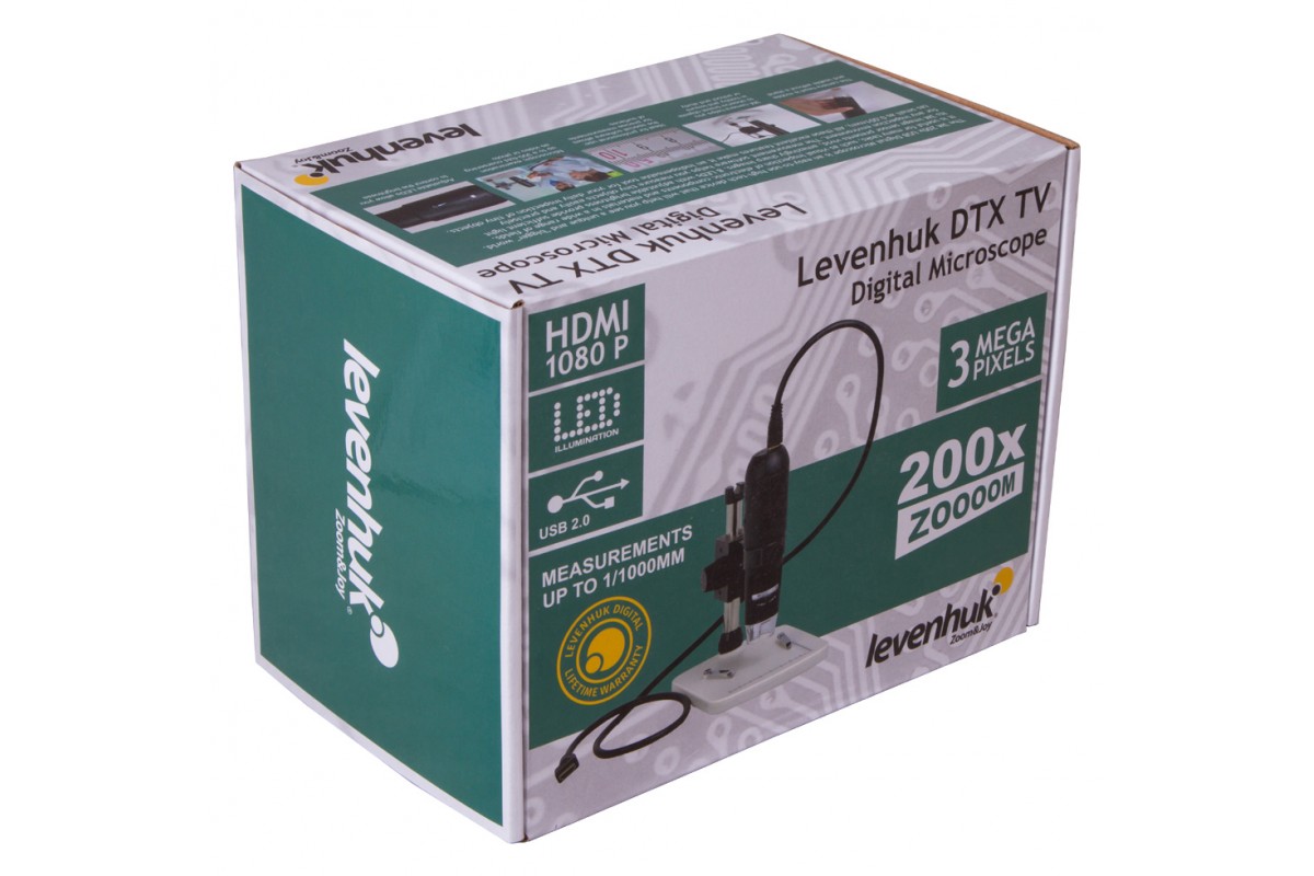 Цифровой микроскоп Levenhuk DTX TV пригодится каждому исследователю окружающего мира. Он одинаково хорошо подойдет для изучения микро- и макрообъектов. С его помощью вы сможете увеличить мелкий шрифт в книге, рассмотреть детали иллюстраций, изучить биологические микропрепараты, минералы, насекомых, ювелирные изделия. Микроскоп подключается к компьютеру или телевизору и может передавать изображение на внешний экран в режиме реального времени.