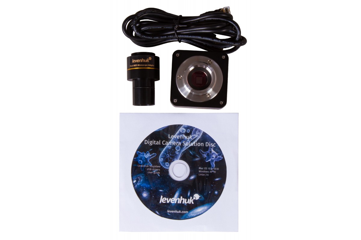 Комплект поставки: • Стойка микроскопа с основанием • Тринокулярная поворотная на 360° насадка • Объективы ахроматические: 4х, 10х, 40xs, 100хs (масляный) с антигрибковым покрытием • Окуляры широкопольные: WF10x/18 мм с антигрибковым покрытием (2 шт.) • Конденсор Аббе N.A. 1,25 с ирисовой диафрагмой и держателем фильтра • Фильтры: синий, зеленый, желтый • Флакон с иммерсионным маслом • Предохранитель (2 шт.) • Сетевой шнур питания для микроскопа • Пылезащитный чехол • Цифровая камера 5,1 Мпикс • Адаптер-переходник для камеры • USB-кабель для подключения и питания камеры • Компакт-диск с ПО и драйверами • Инструкция по эксплуатации и гарантийный талон