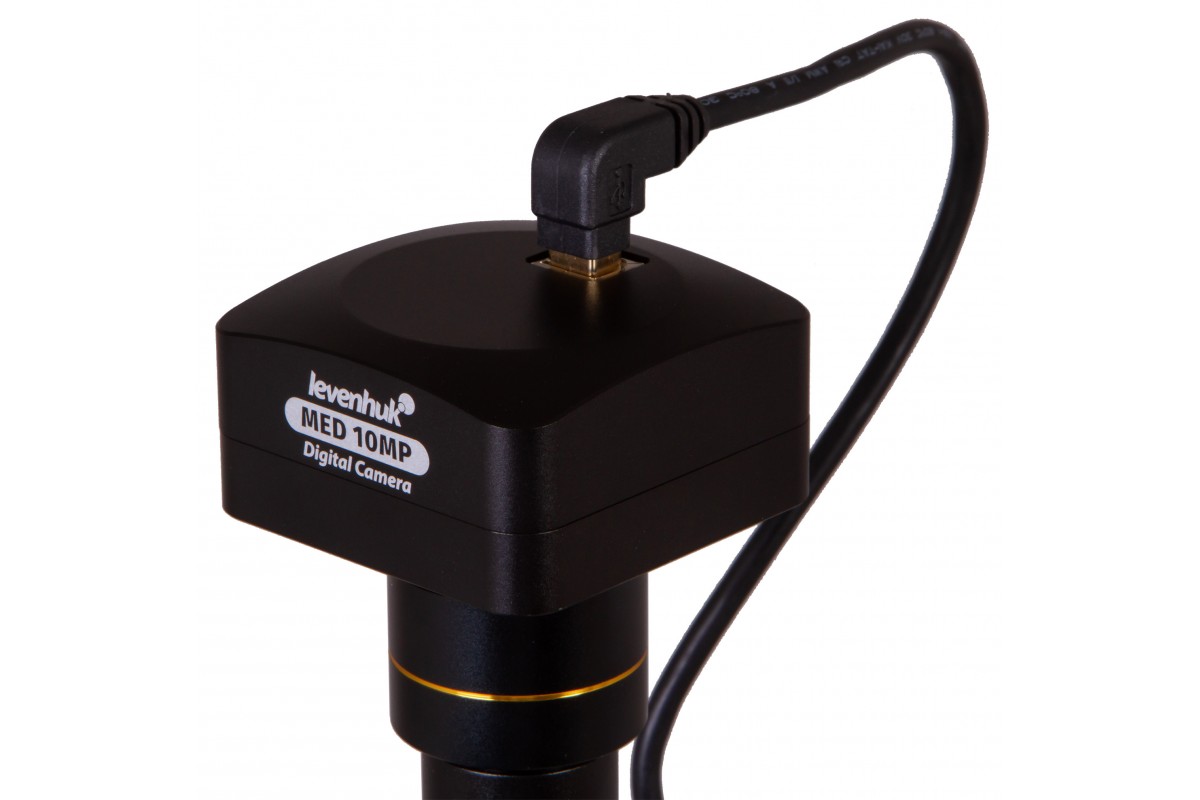 В комплекте есть цифровая 10-мегапиксельная камера. С ее помощью можно передавать изображение с микроскопа на внешний экран, снимать фото и видео исследований. Камеру нужно подключать к компьютеру при помощи USB-кабеля, а специальная программа позволяет проводить простую обработку снимков. С помощью ПО можно корректировать размер, яркость и контрастность изображения, менять время выдержки, проводить калибровку камеры с объективами, измерять образцы или отдельные структуры (доступно несколько единиц измерения). Цифровая камера делает работу в лаборатории легкой и удобной, так как позволяет вести исследования, смотря не в окуляры, а на экран компьютера, а это значительно снижает нагрузку на зрение.