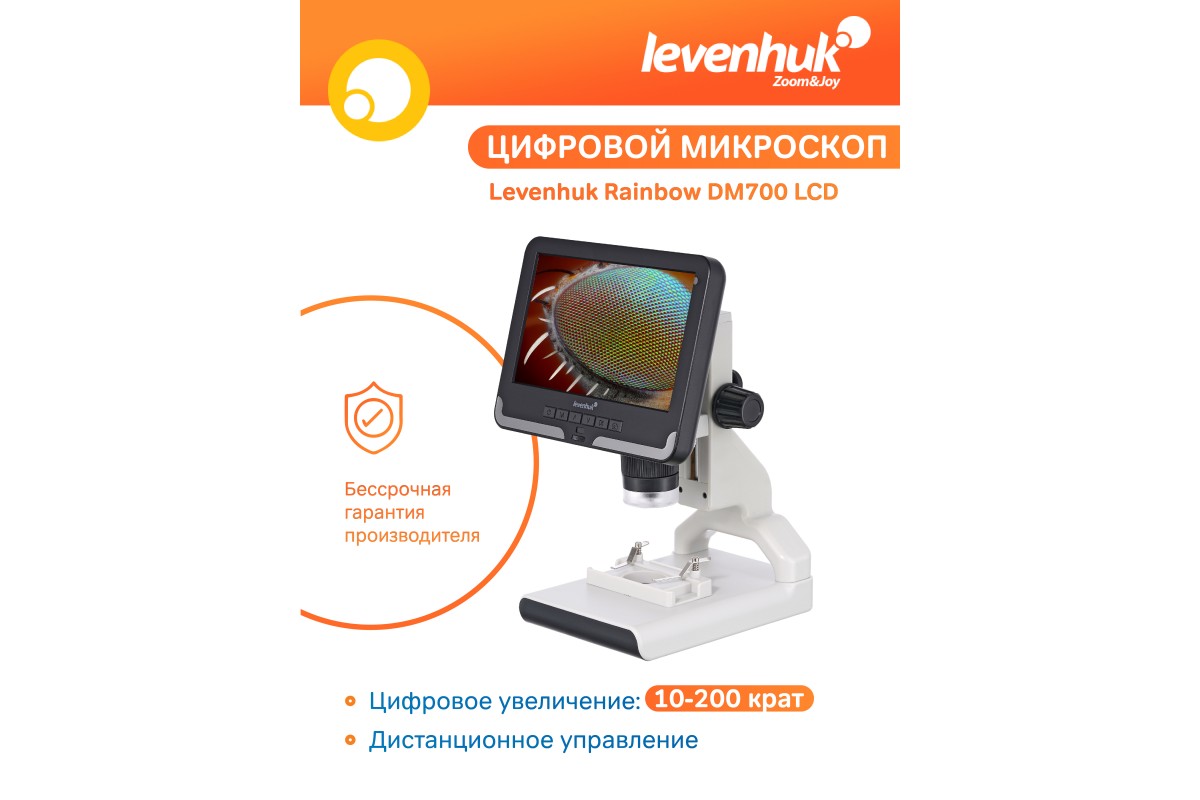 Цифровой микроскоп Levenhuk Rainbow DM700 LCD предназначен для изучения крупных объектов, а также фотографирования и видеозаписи исследований. С его помощью можно изучать минералы, текстиль, насекомых, части растений, небольшие механизмы и электронику. Микроскоп снабжен комбинированной подсветкой, поэтому позволяет проводить наблюдения и в проходящем, и в отраженном свете. Дополнительный плюс – микроскопом можно управлять через беспроводной пульт.