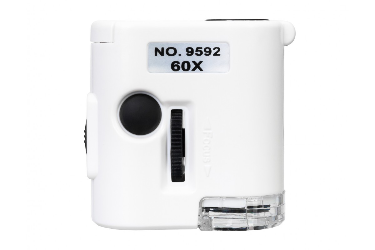 Благодаря наличию подсветки из пары классических светодиодов микроскоп Levenhuk Zeno Cash ZC2 может применяться и для обычных визуальных наблюдений. Увеличение оптики составляет 60 крат. Интенсивность работы подсветки можно регулировать с помощью переключателя на корпусе. Три батарейки для работы подсветок уже включены в комплект. Настройка резкости выполняется с помощью удобного крупного колеса грубой фокусировки.